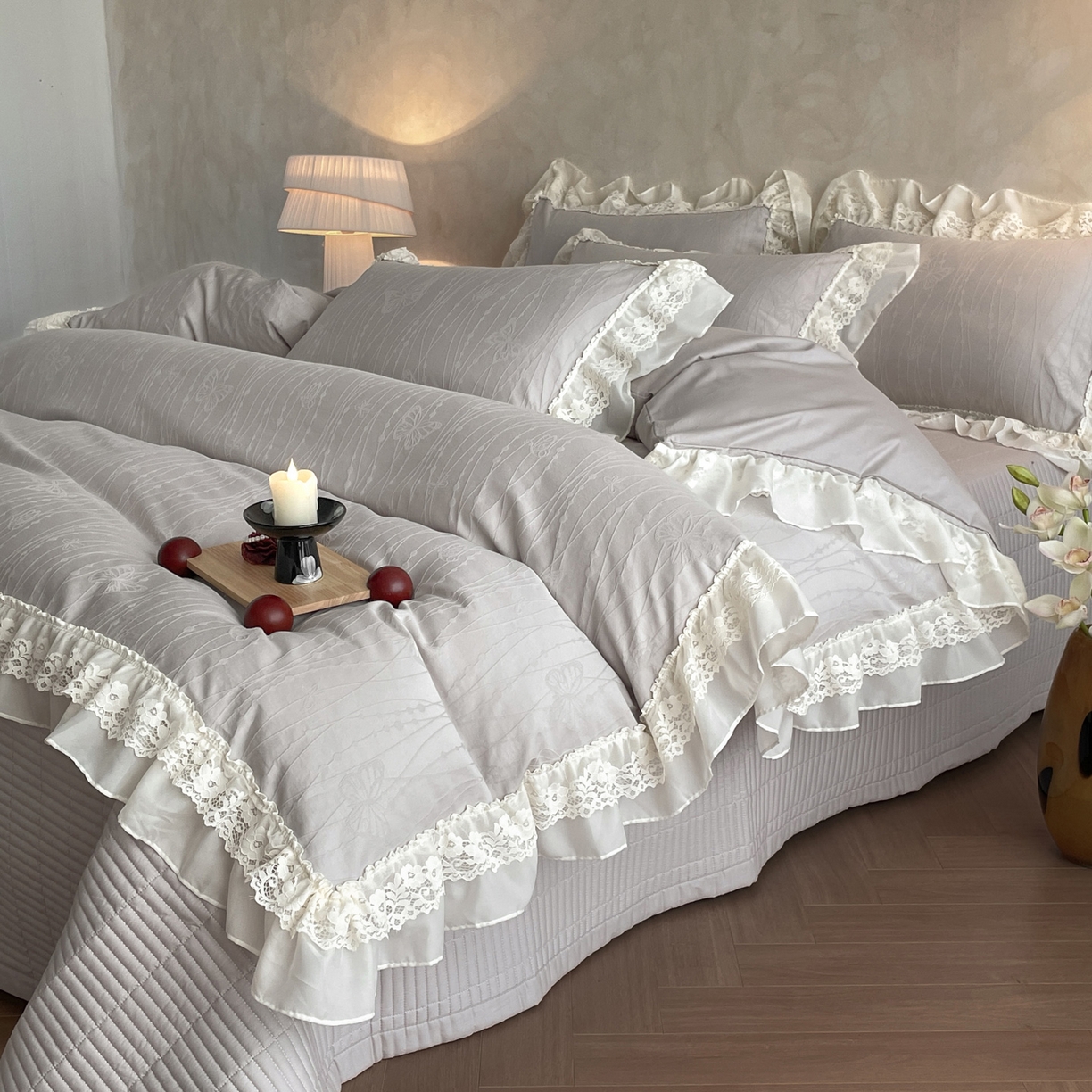 2026新款全棉A类小清新花边床盖款系列四件套