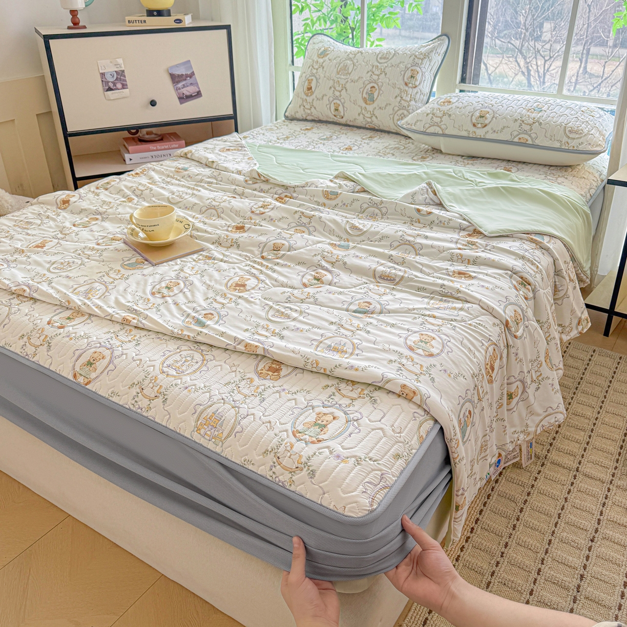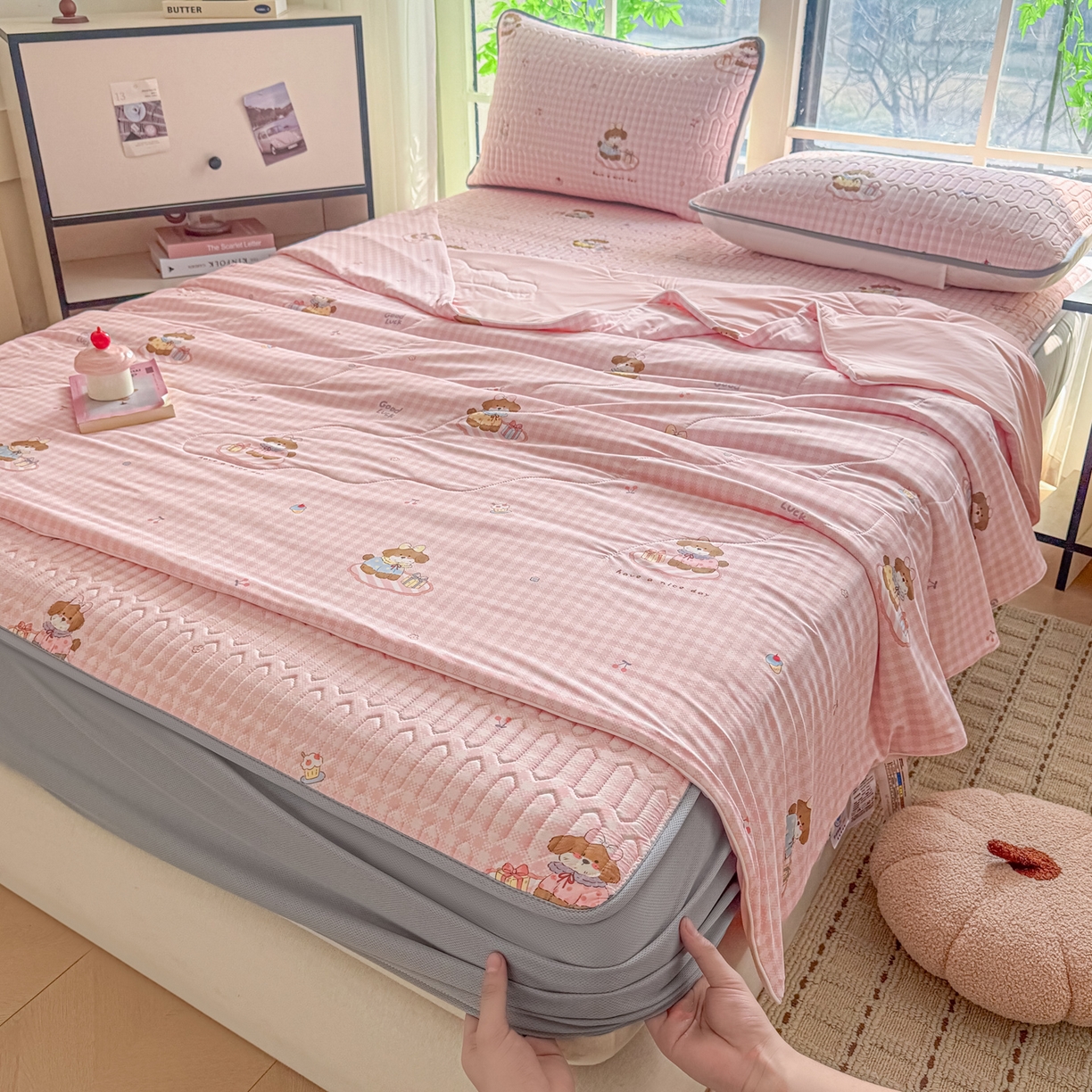 25新款A类凉感丝熊豆豆凉席床笠款