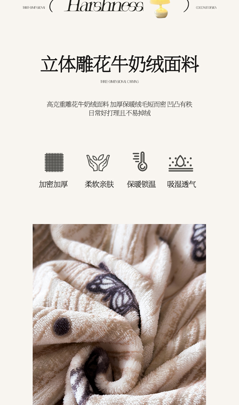 2025新款牛奶绒着色立体浮雕雕花绒四件套-赫本系列