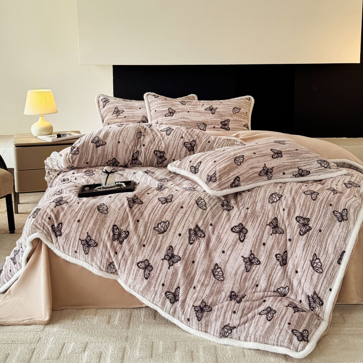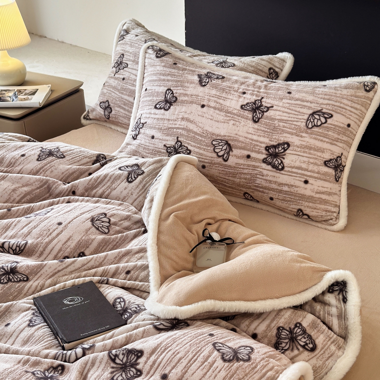 2025新款牛奶绒阳离子提花包边被套毯四件套