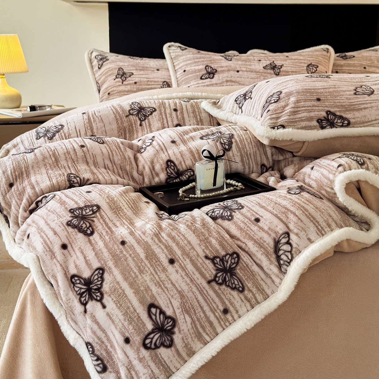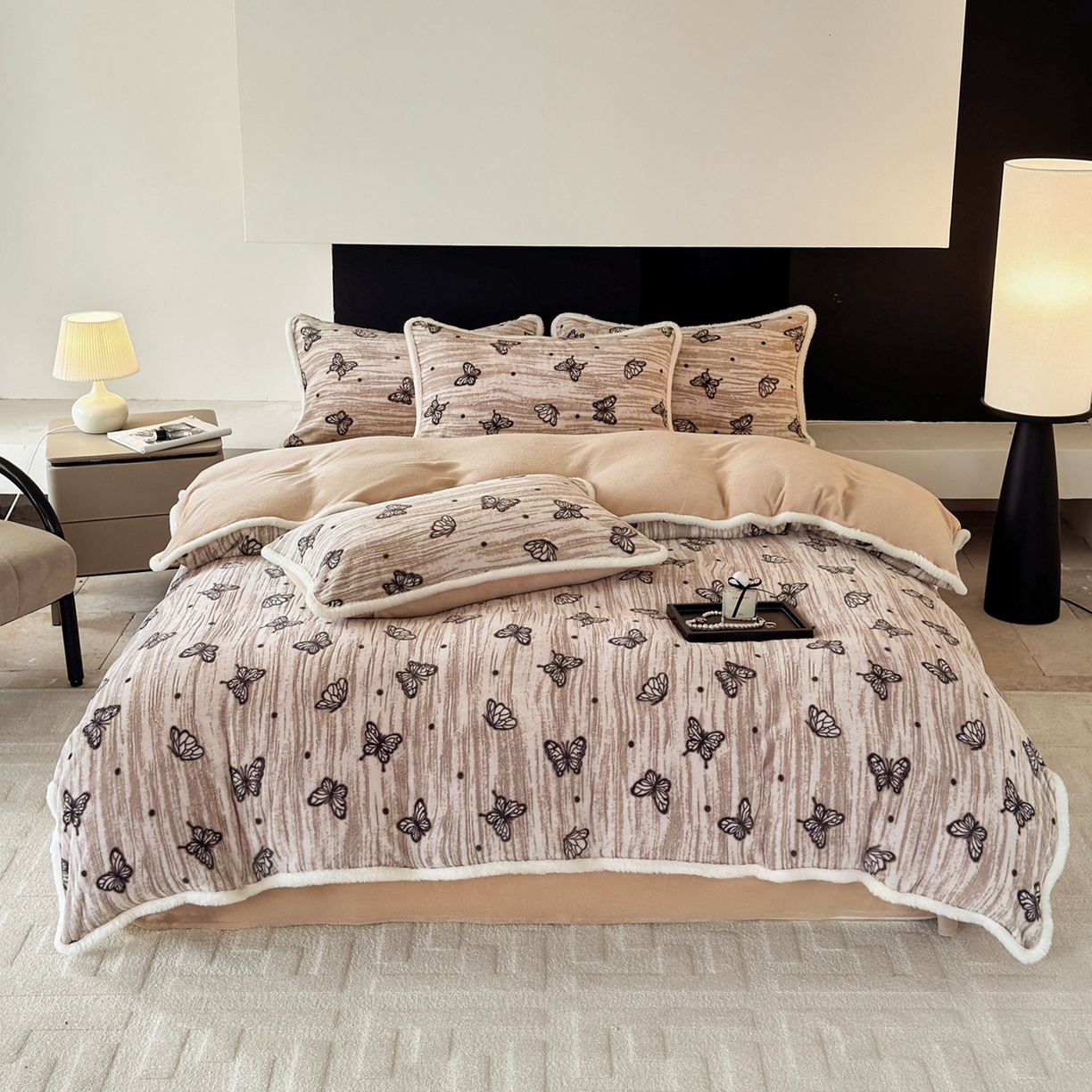 > (总)莱登卡奴 2025新款高克重牛奶绒雕花兔毛包边款系列四件套