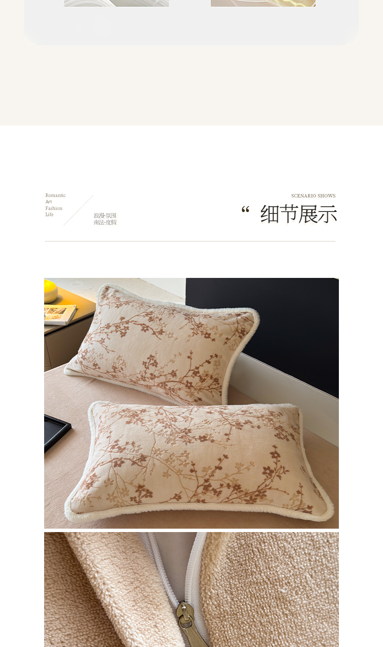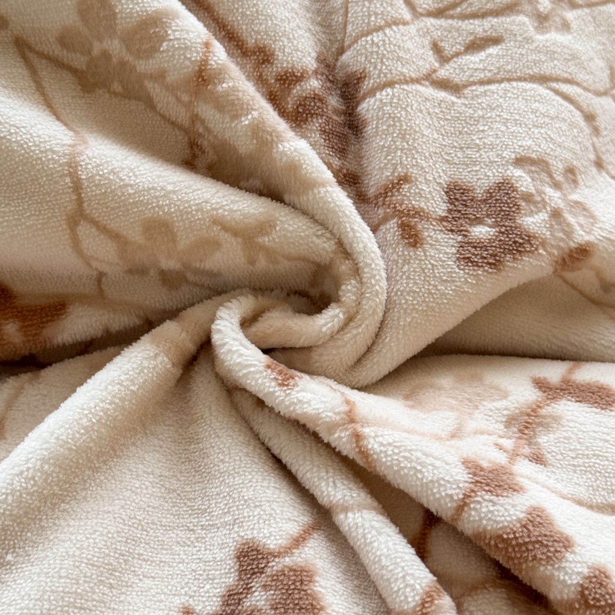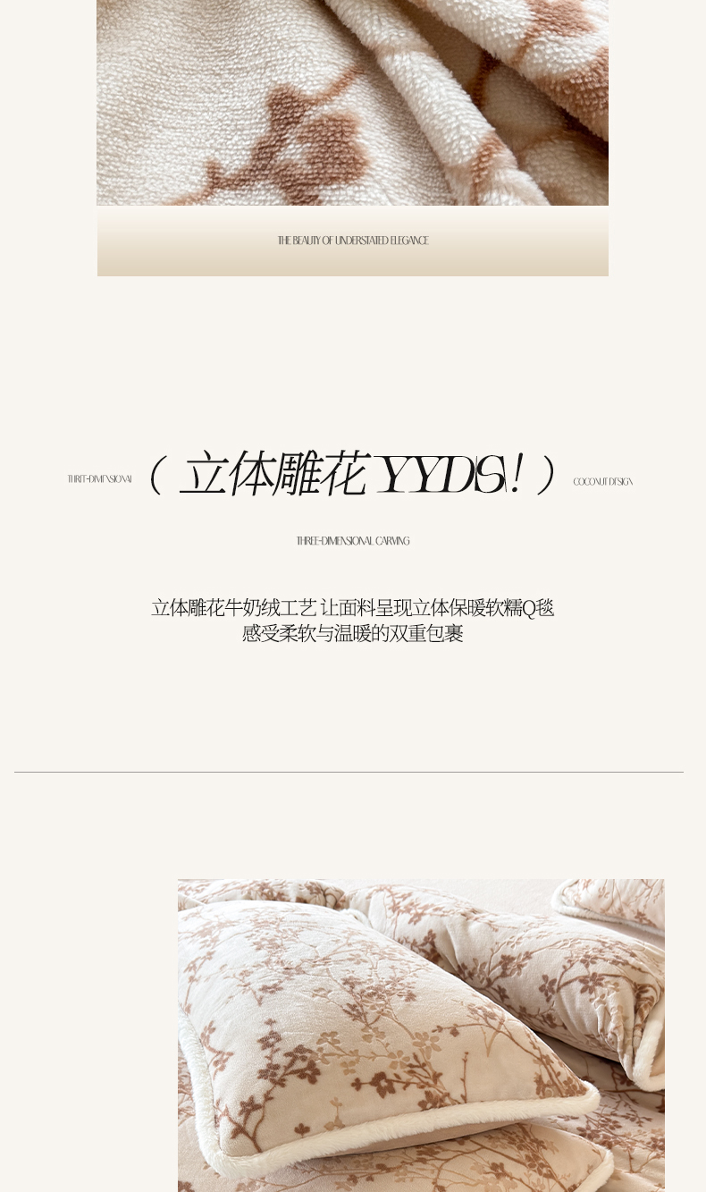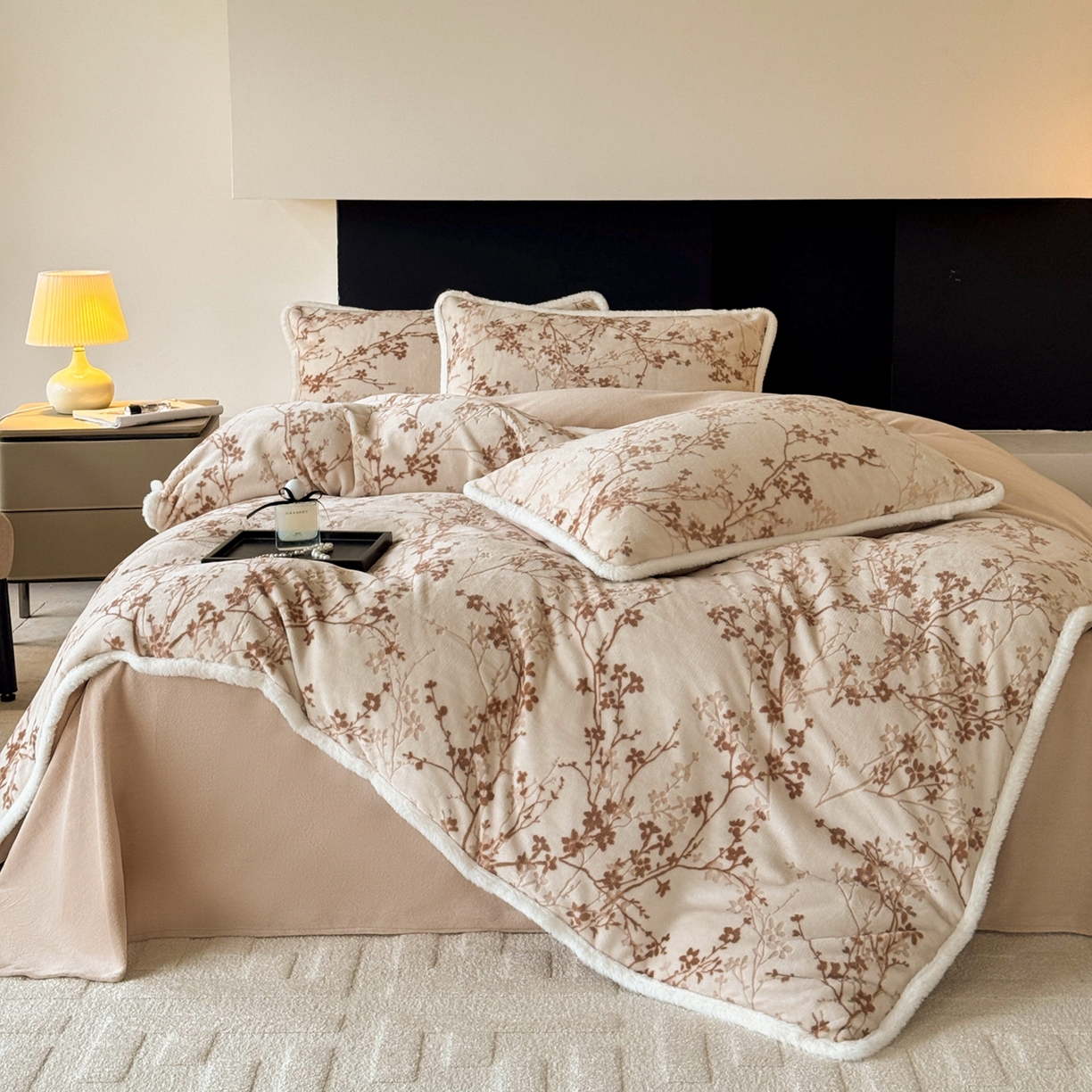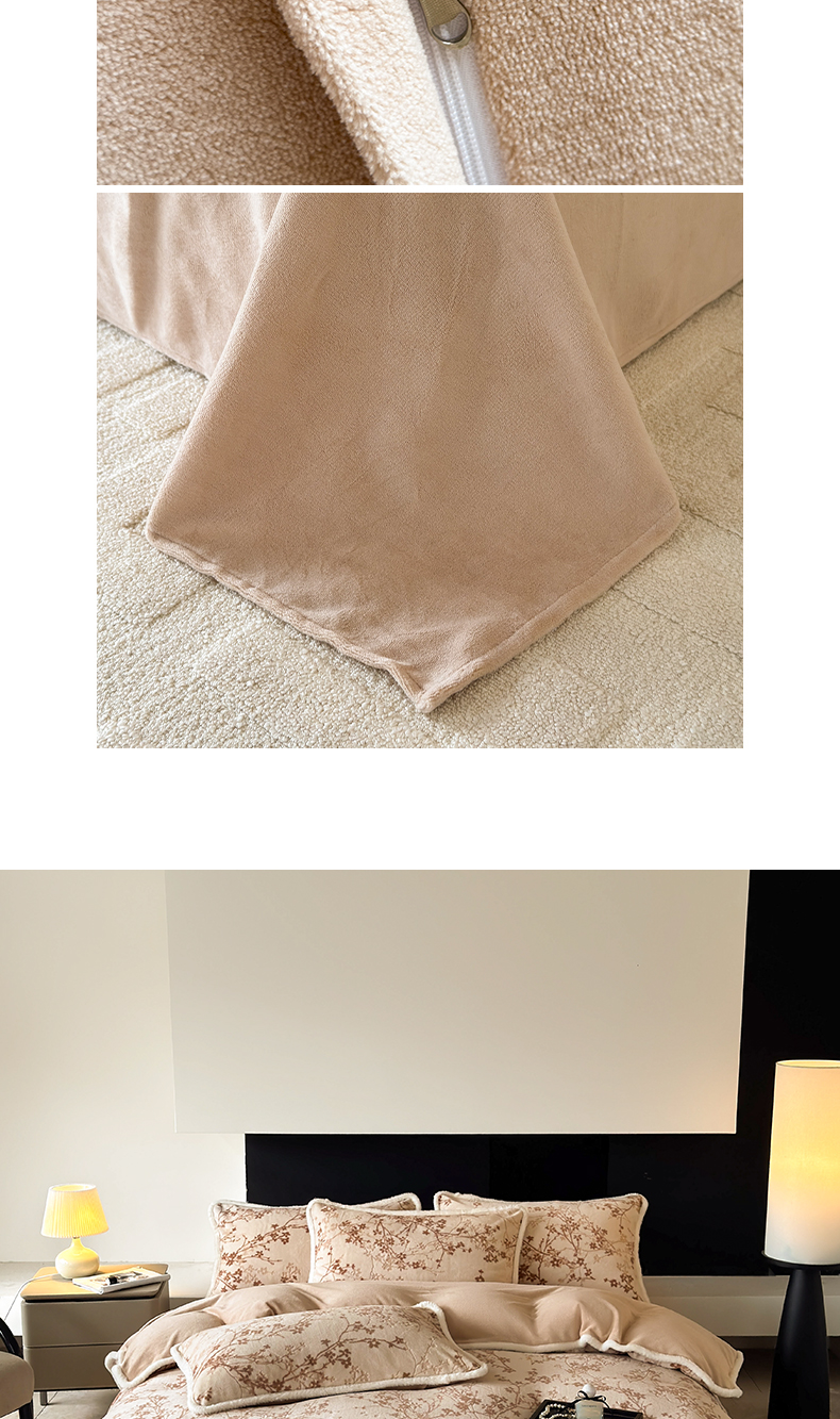 莱登卡奴 2025新款高克重牛奶绒雕花兔毛包边款系列四件套 山茶花语-咖