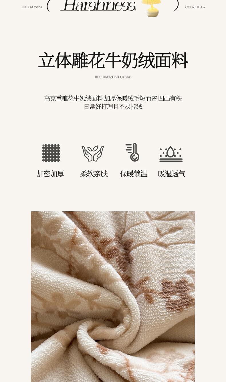 2025新款牛奶绒着色立体浮雕雕花绒四件套-赫本系列