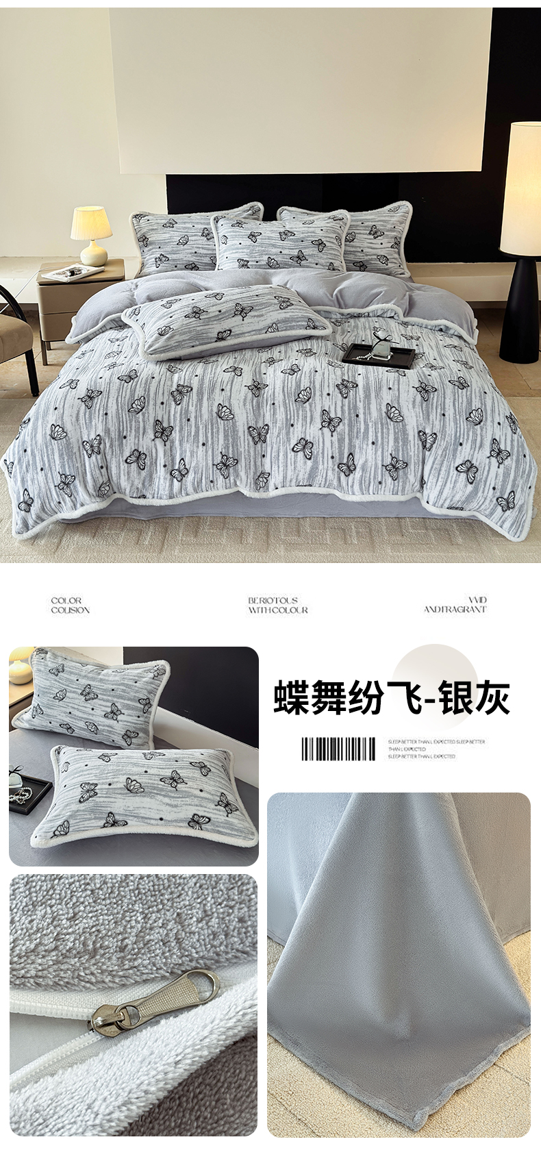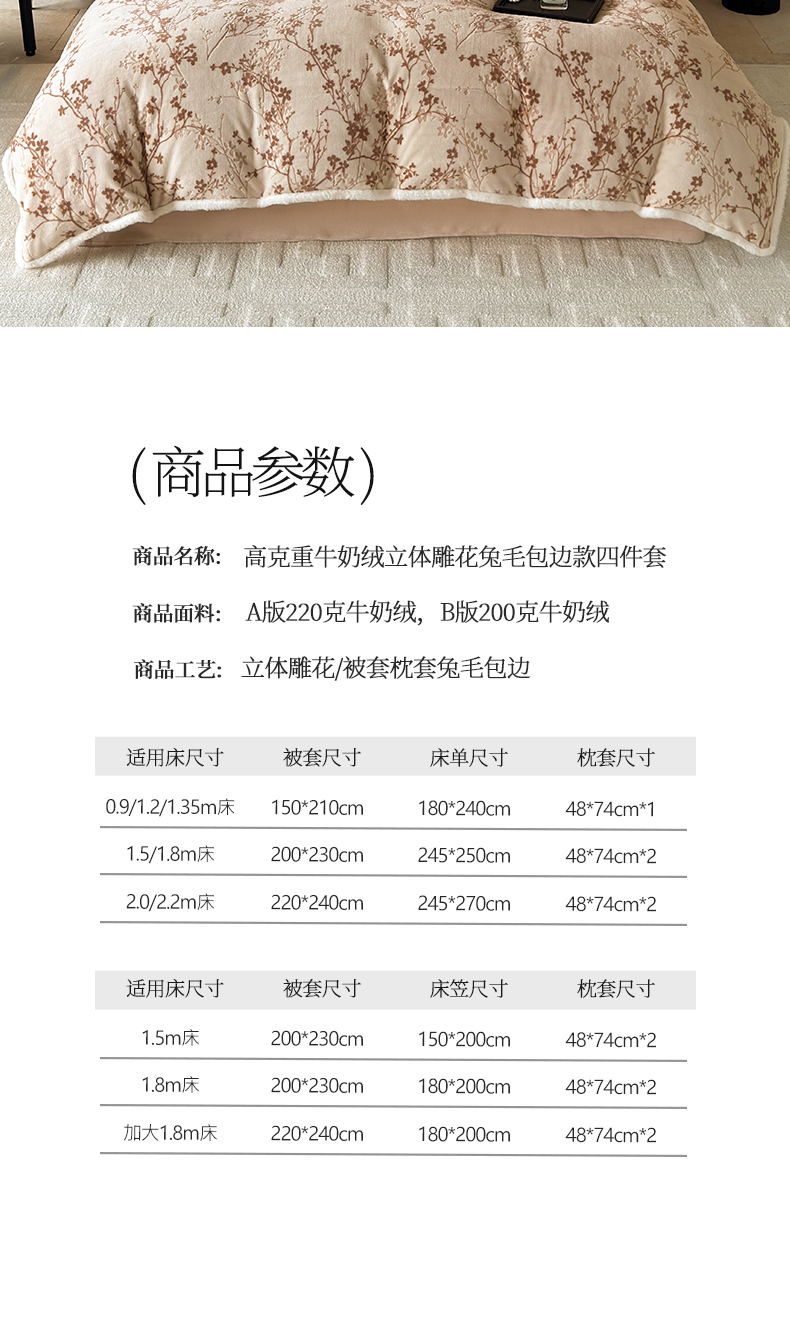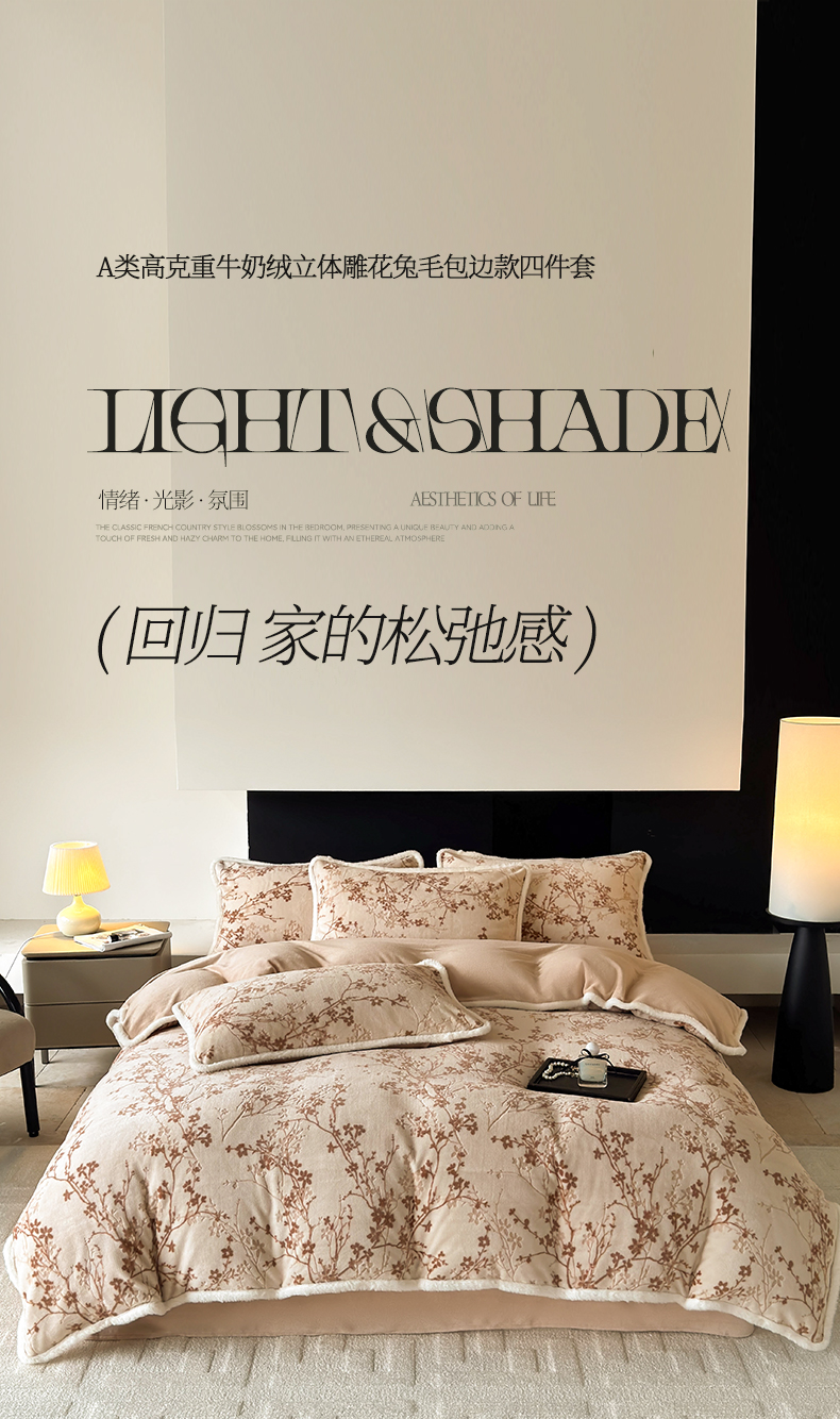 2025新款高克重牛奶绒雕花兔毛包边款系列四件套