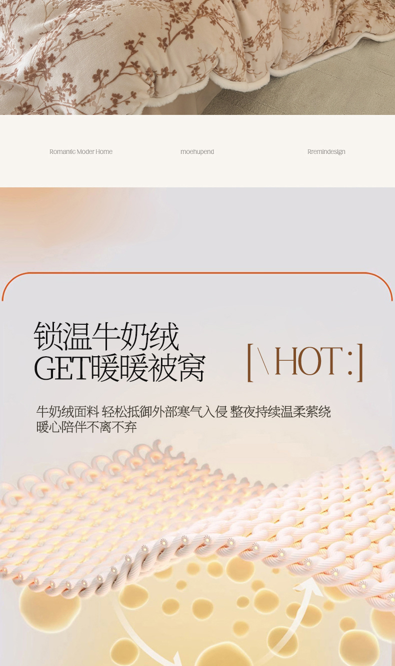 2025新款A类高克重牛奶绒泡泡绒印花美拉德风系列四件套