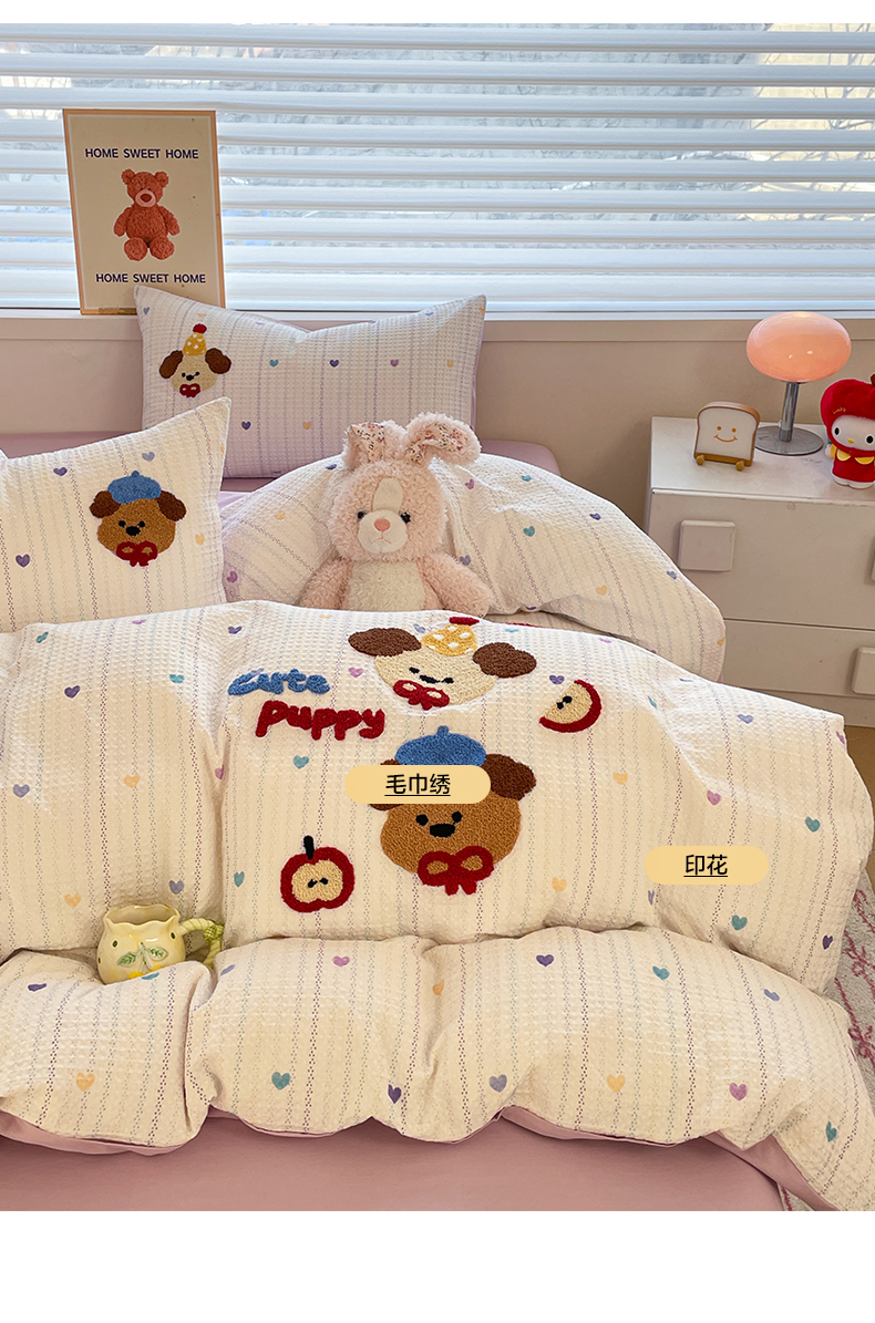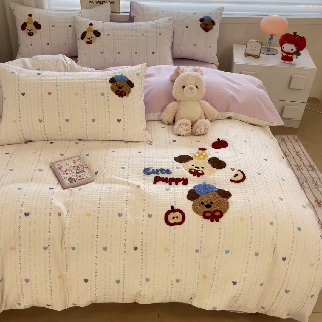 2025新款A类全棉双层纱印加绣呆萌系列四件套