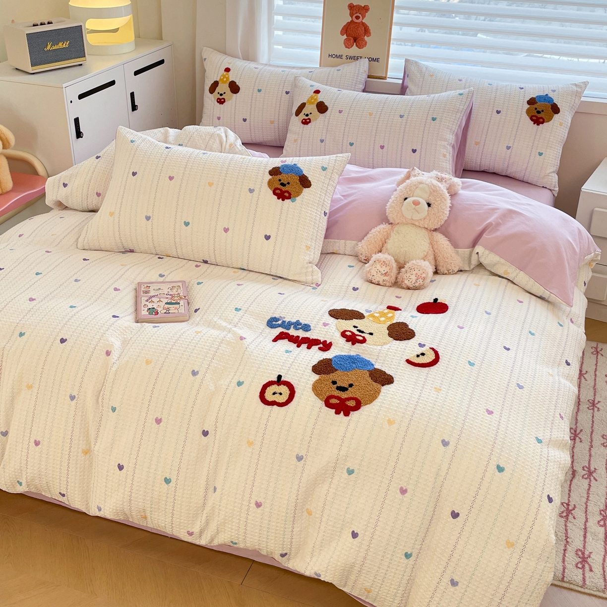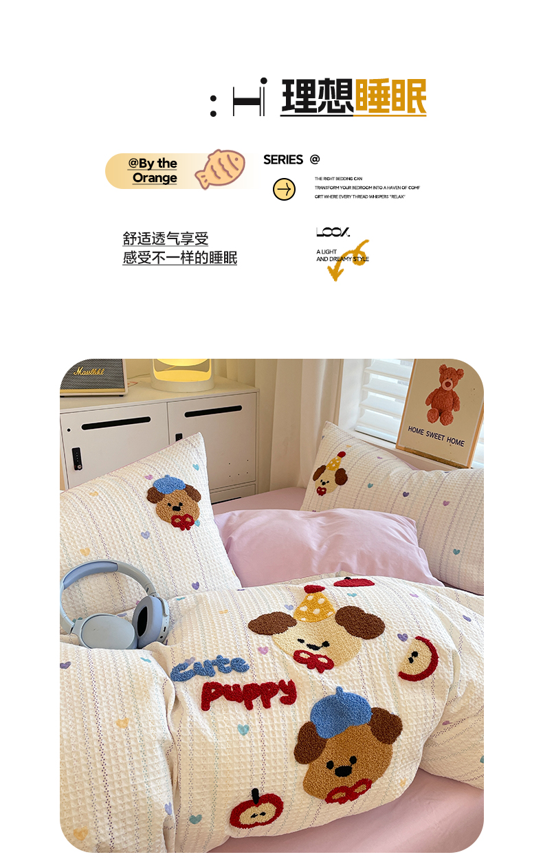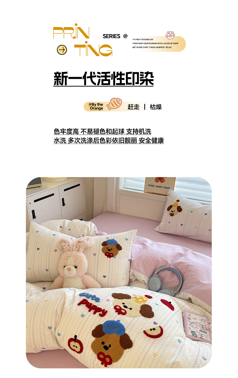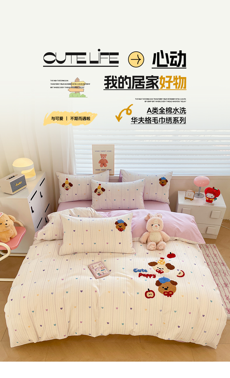 全棉A类色织水洗棉贝壳绣学生宿舍床系列