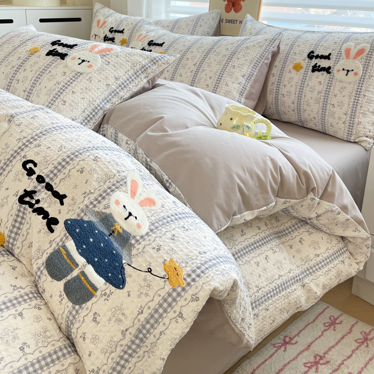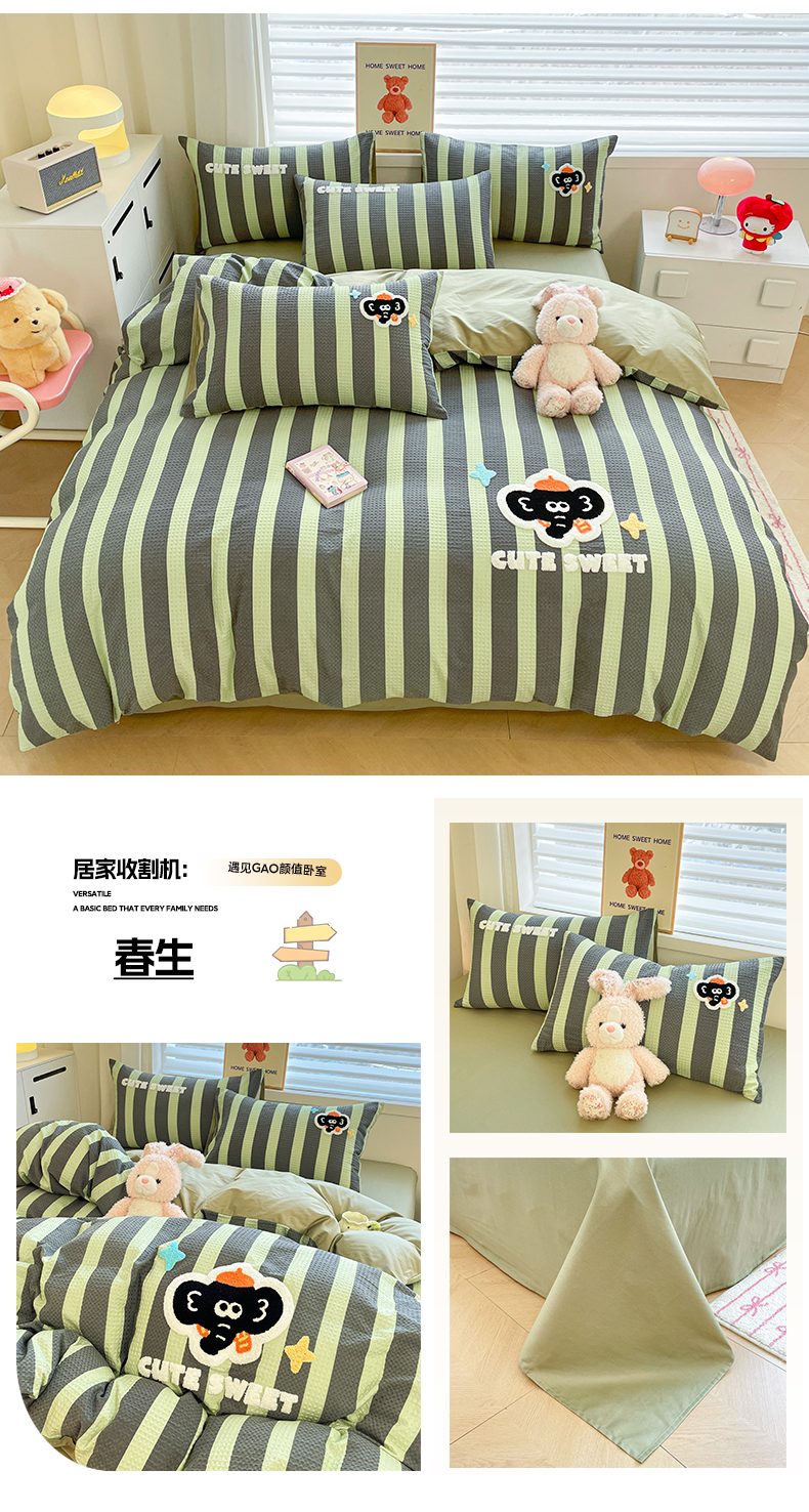 2025新款A类100%全棉磨毛条格卡通系列四件套