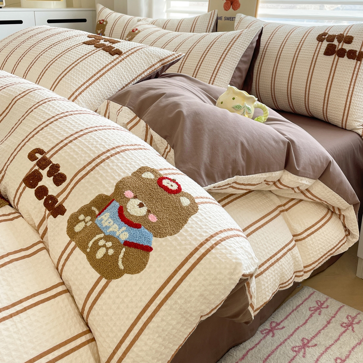 2025新款A类高克重牛奶绒泡泡绒印花美拉德风系列四件套