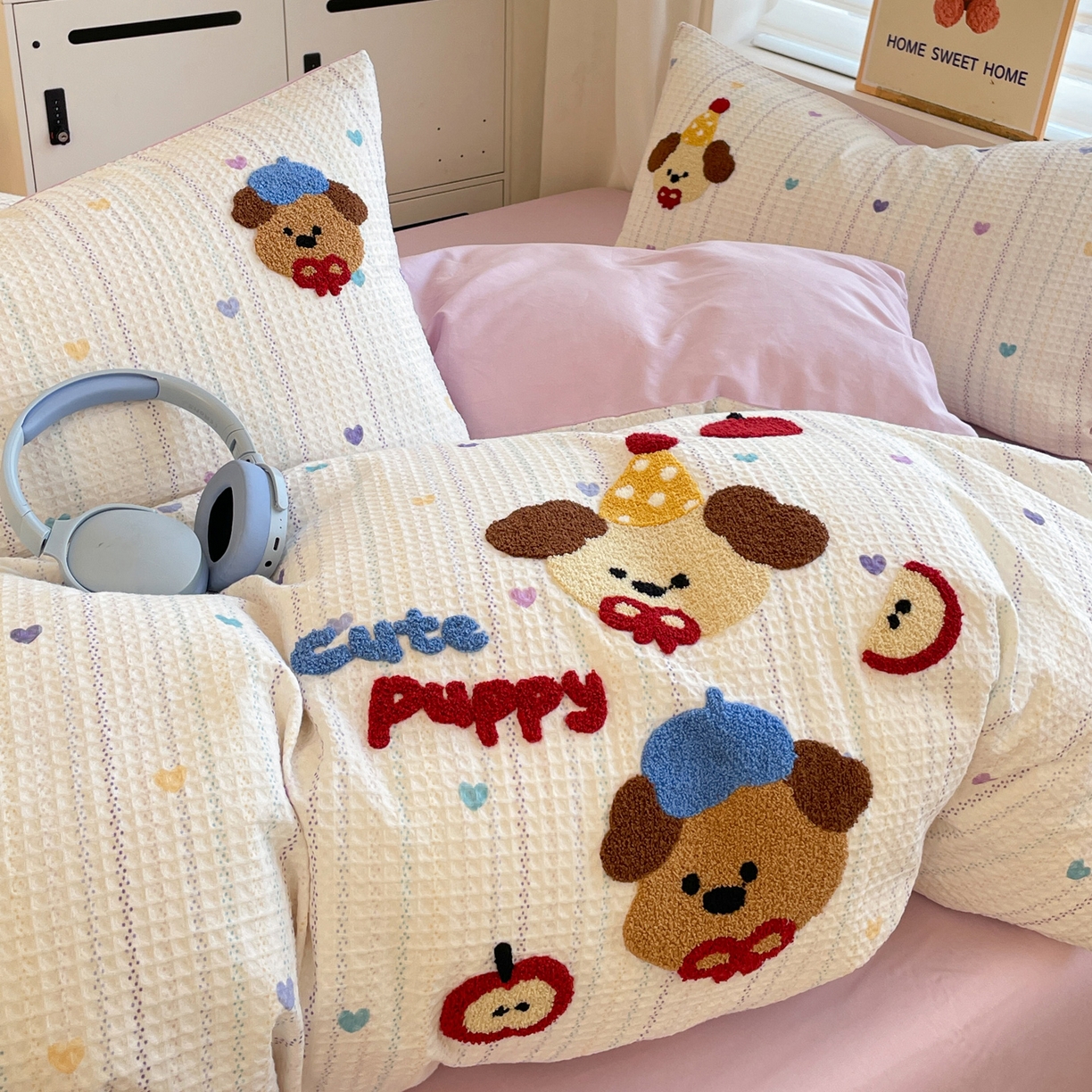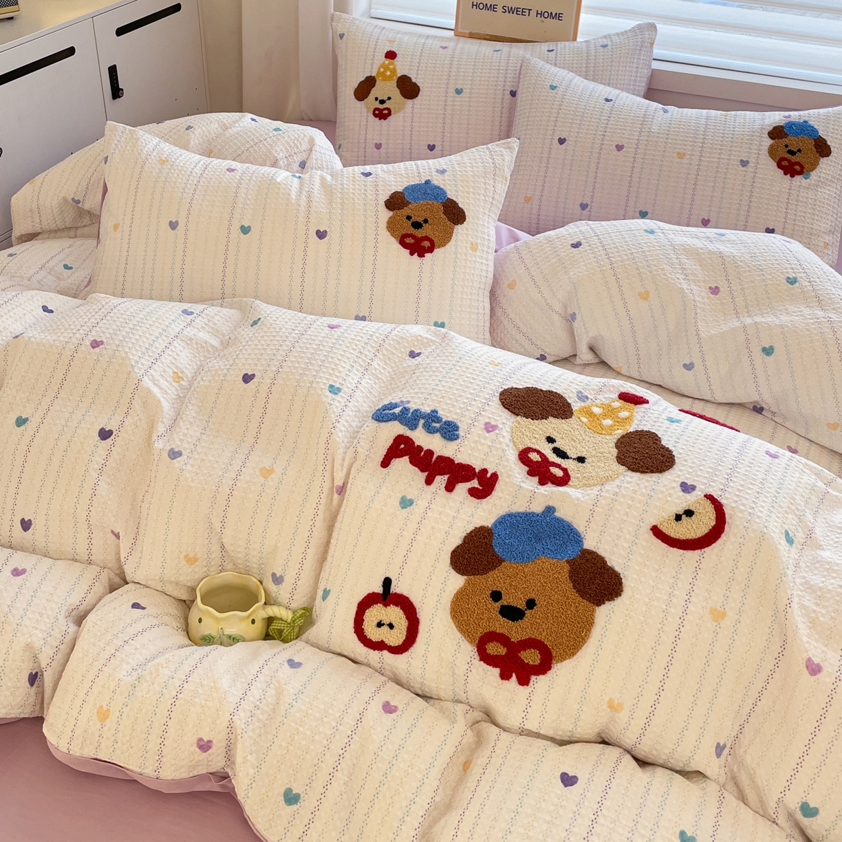 2025新款A类全棉双层纱印加绣呆萌系列四件套