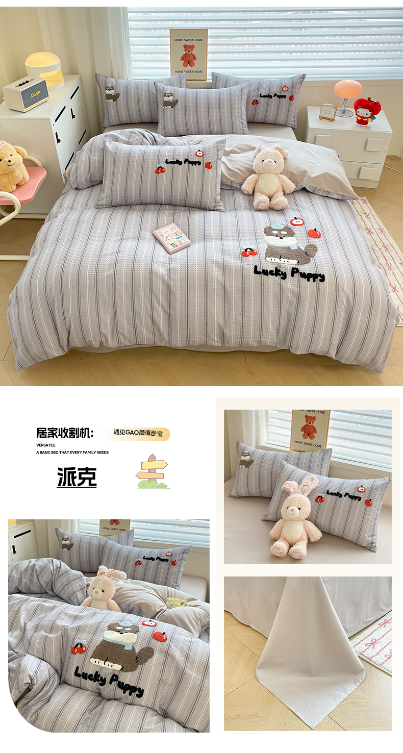 2025新款A类100%全棉磨毛条格卡通系列四件套
