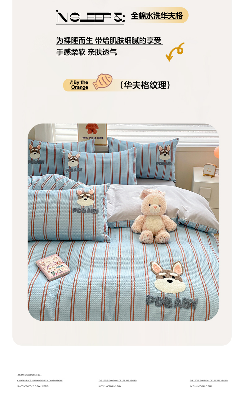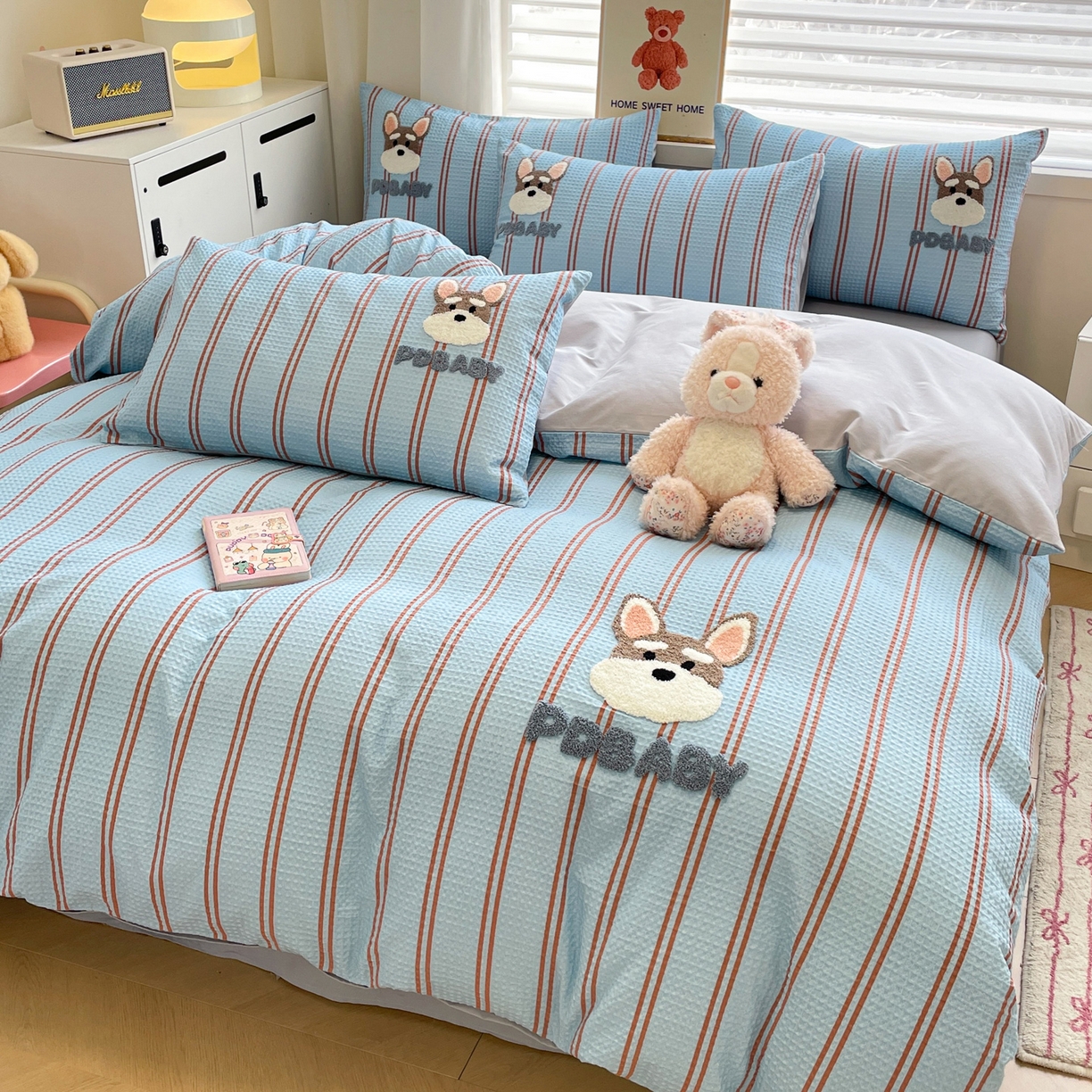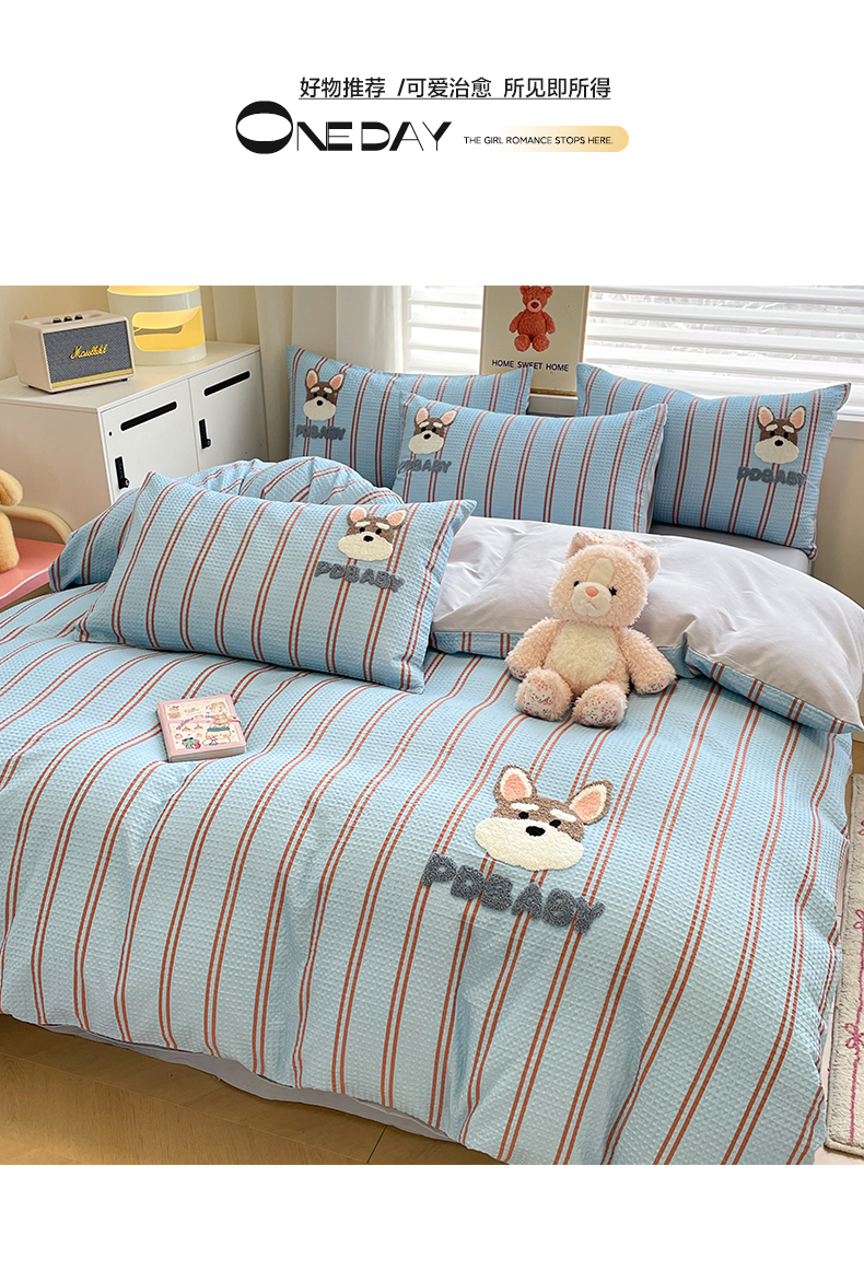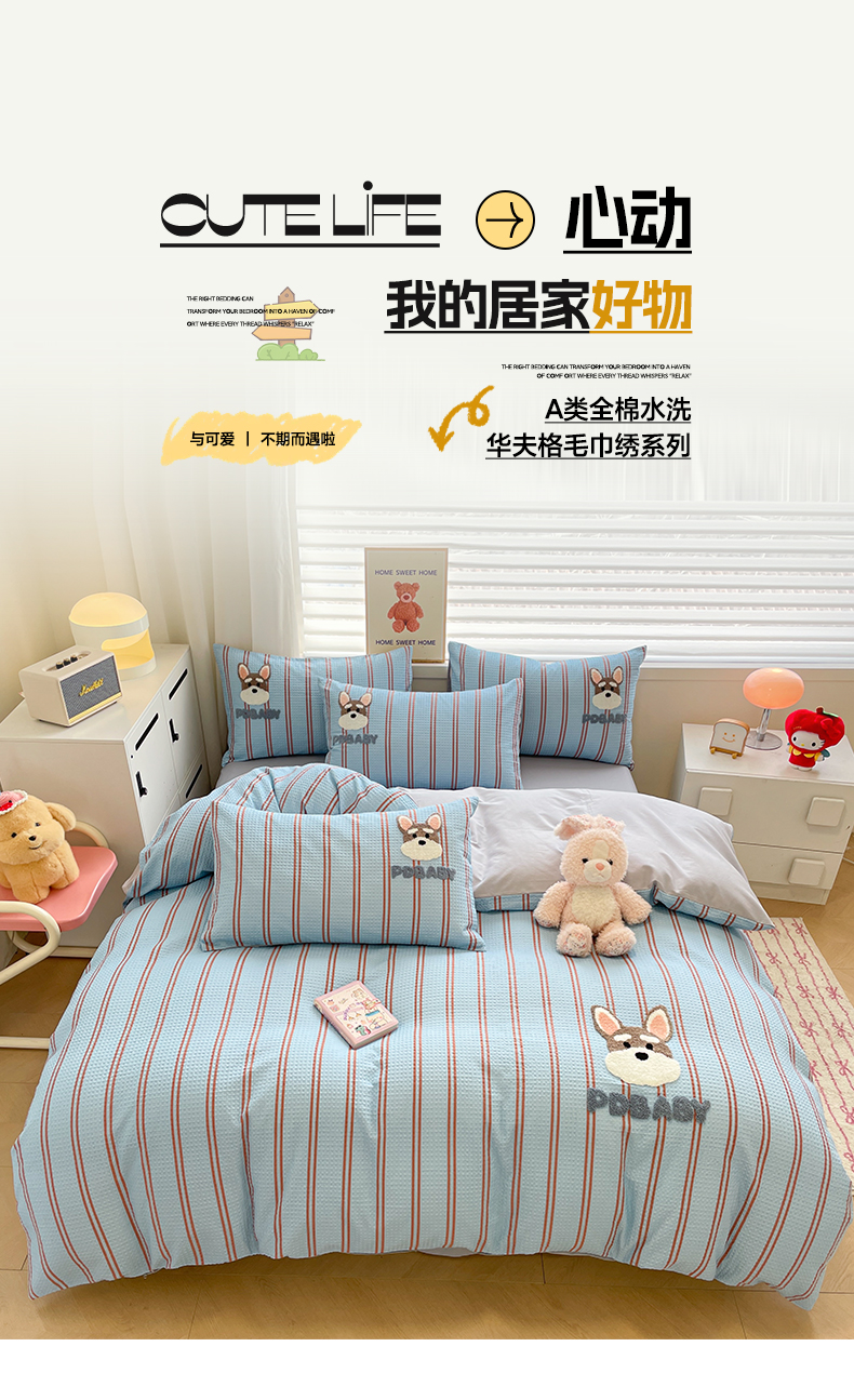 全棉A类色织水洗棉贝壳绣学生宿舍床系列