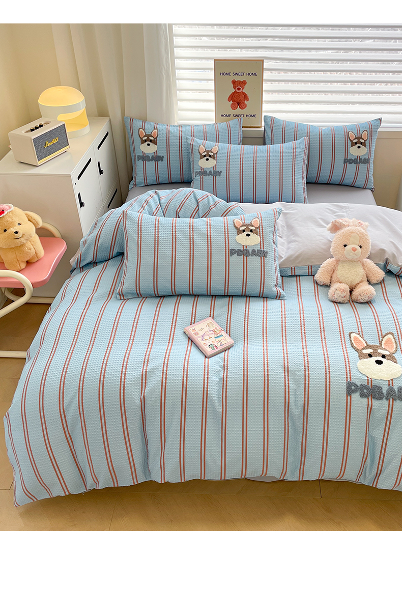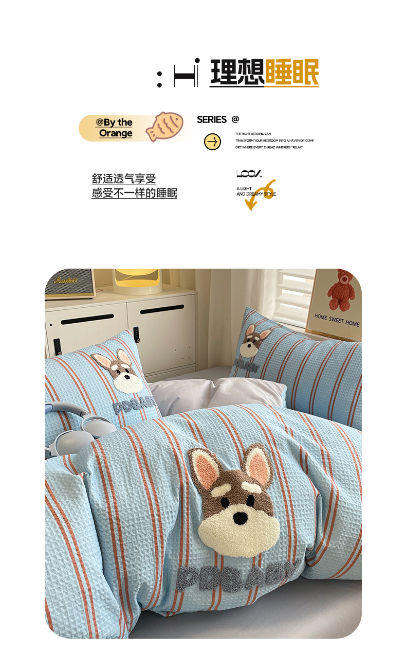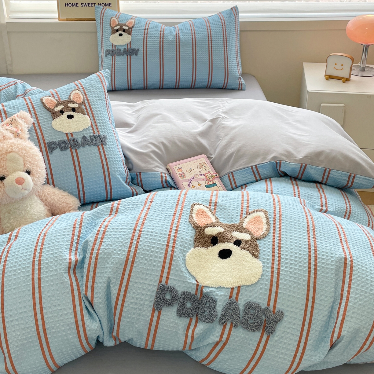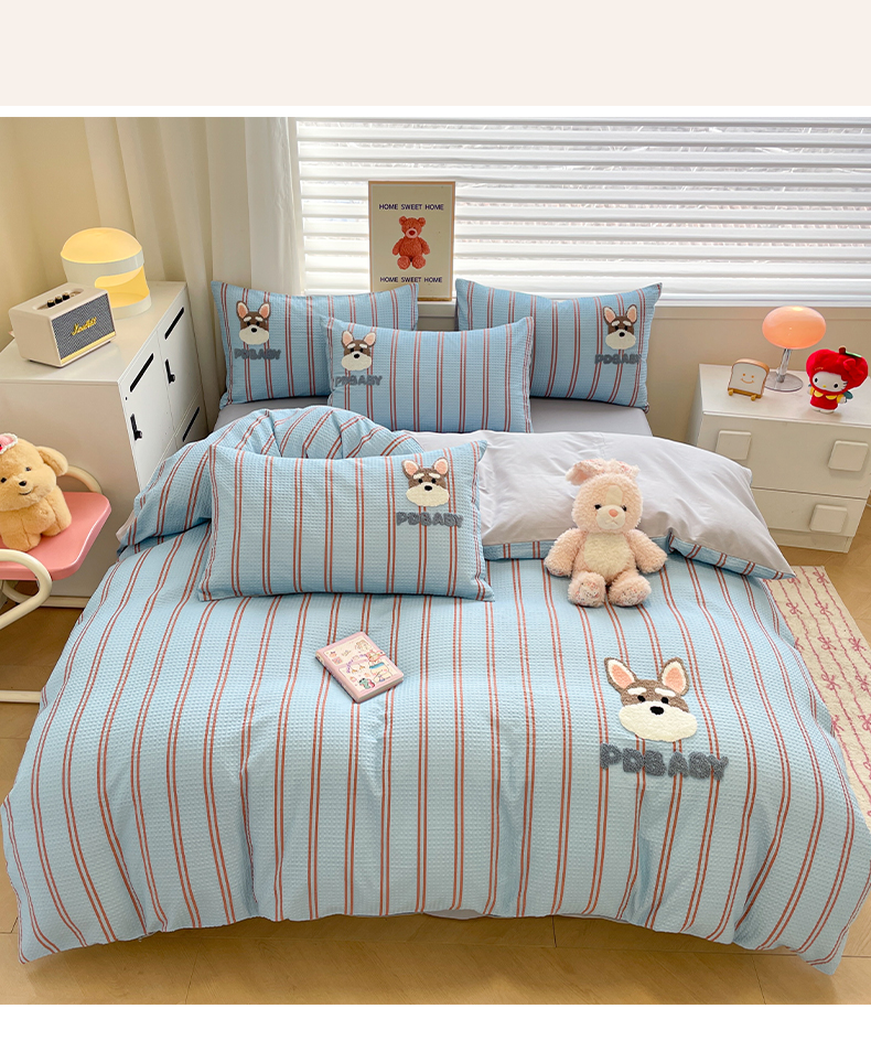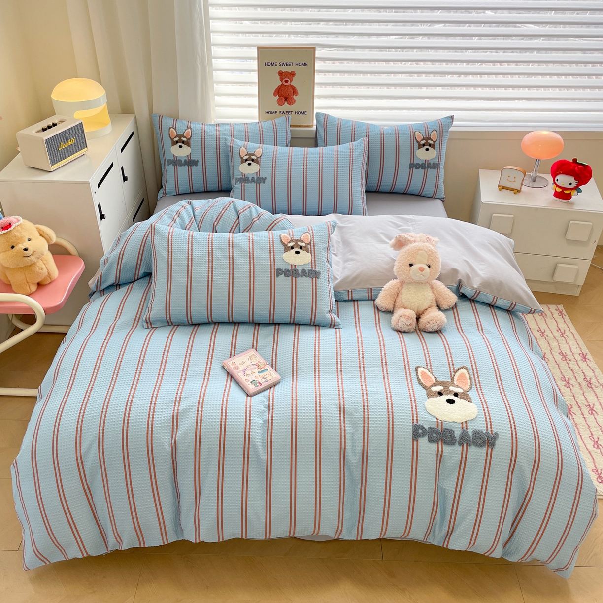 全棉A类色织水洗棉贝壳绣学生宿舍床系列
