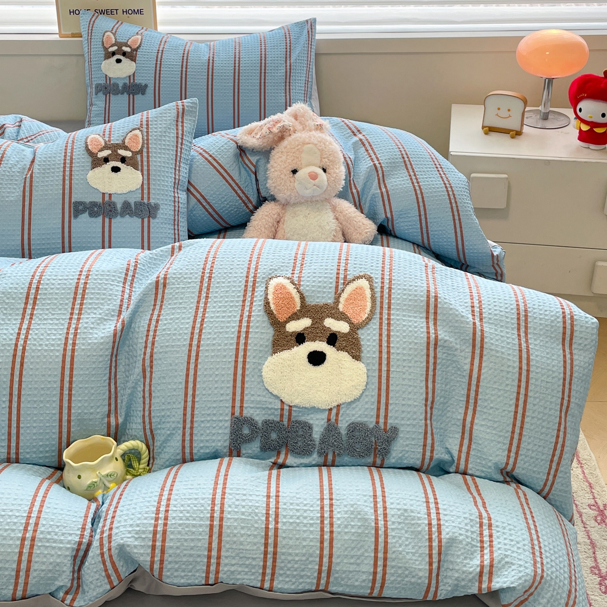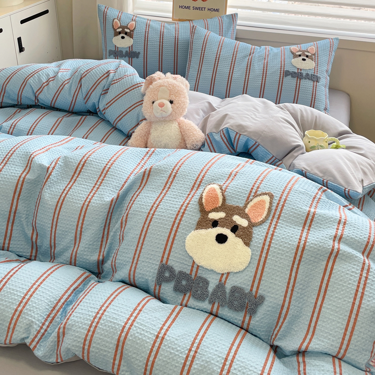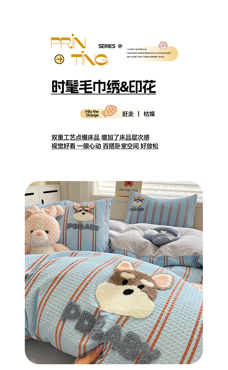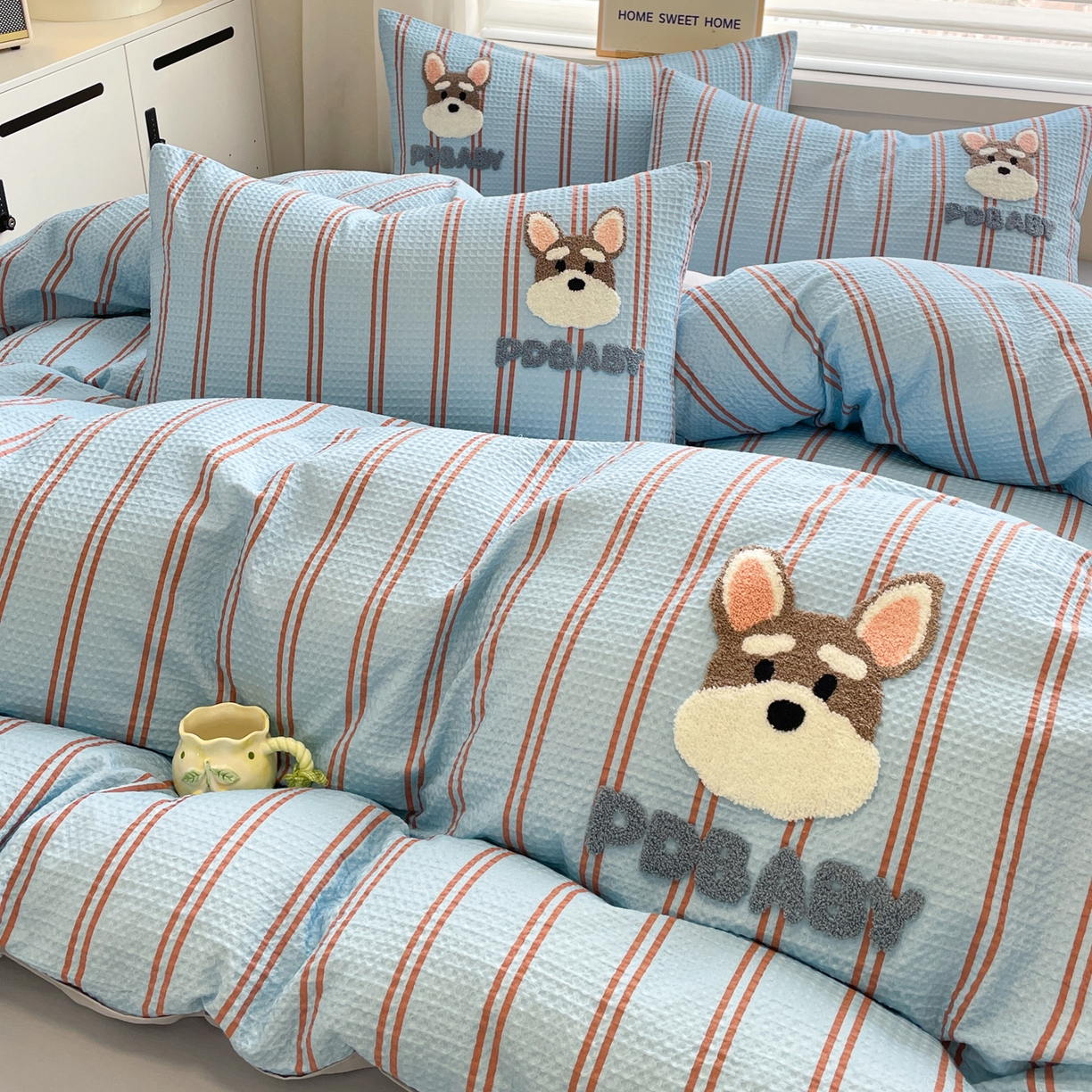 全棉A类色织水洗棉贝壳绣学生宿舍床系列