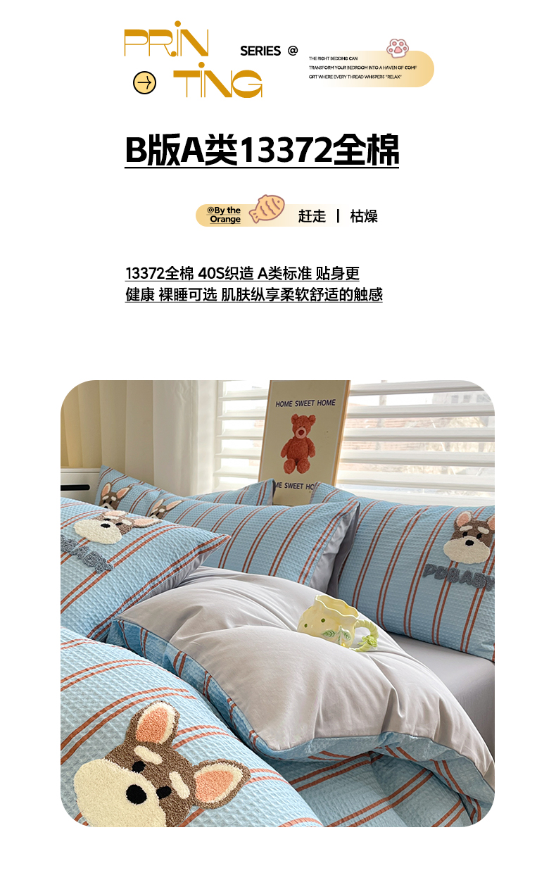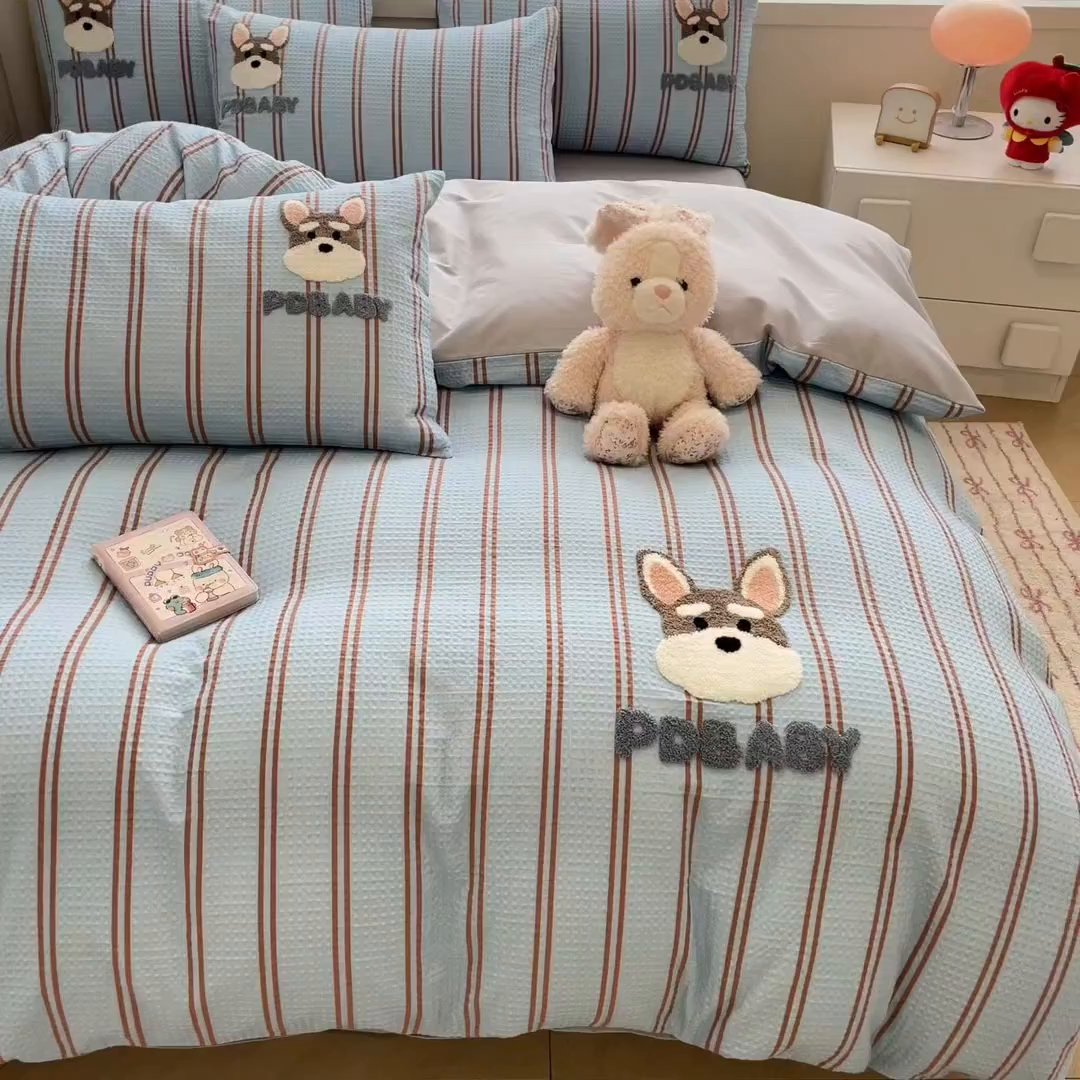2025新款A类100%全棉磨毛条格卡通系列四件套