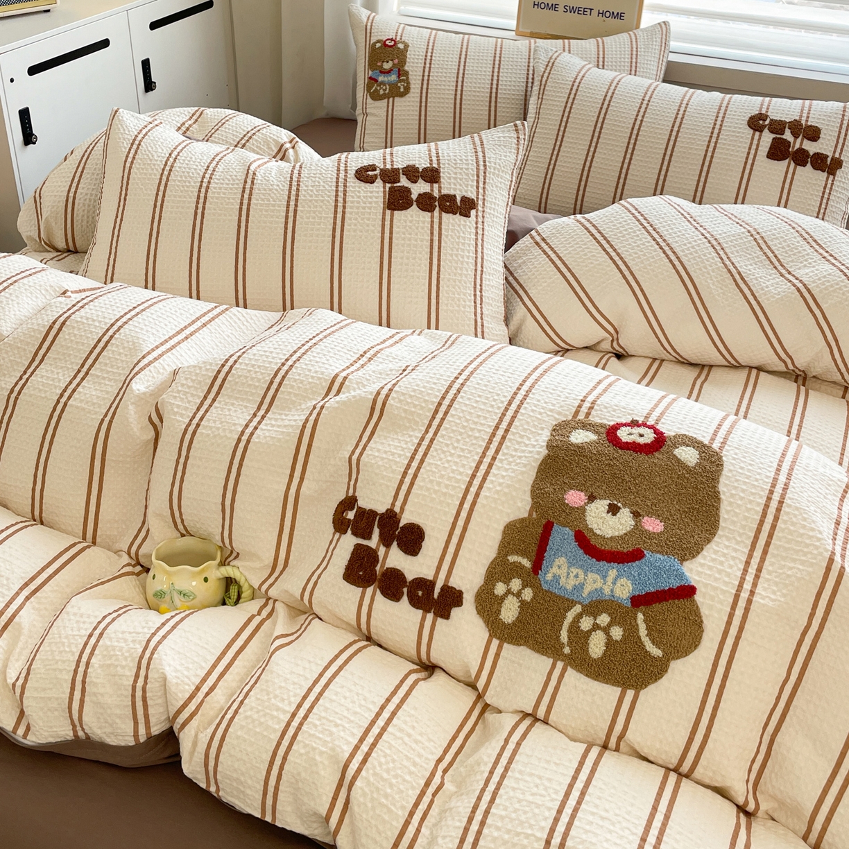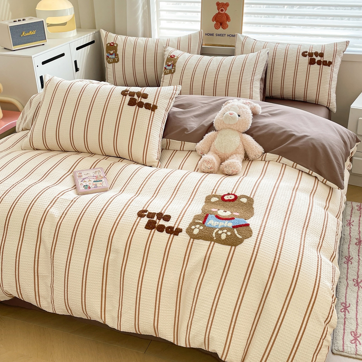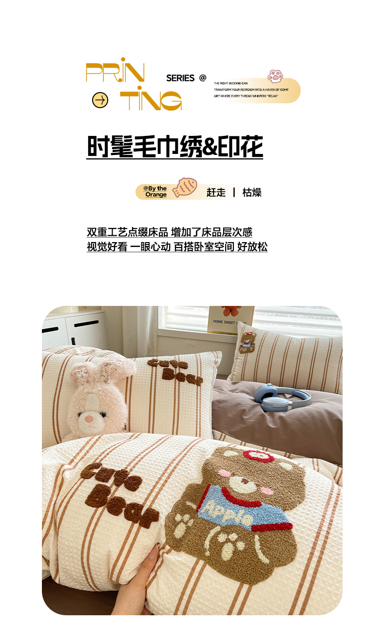 2025新款A类高克重牛奶绒泡泡绒印花美拉德风系列四件套