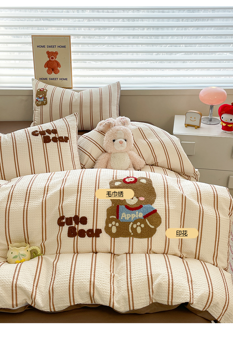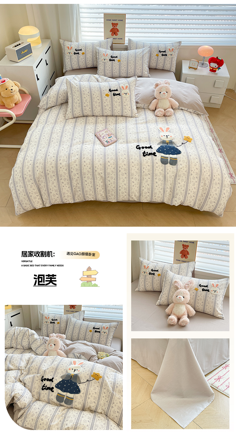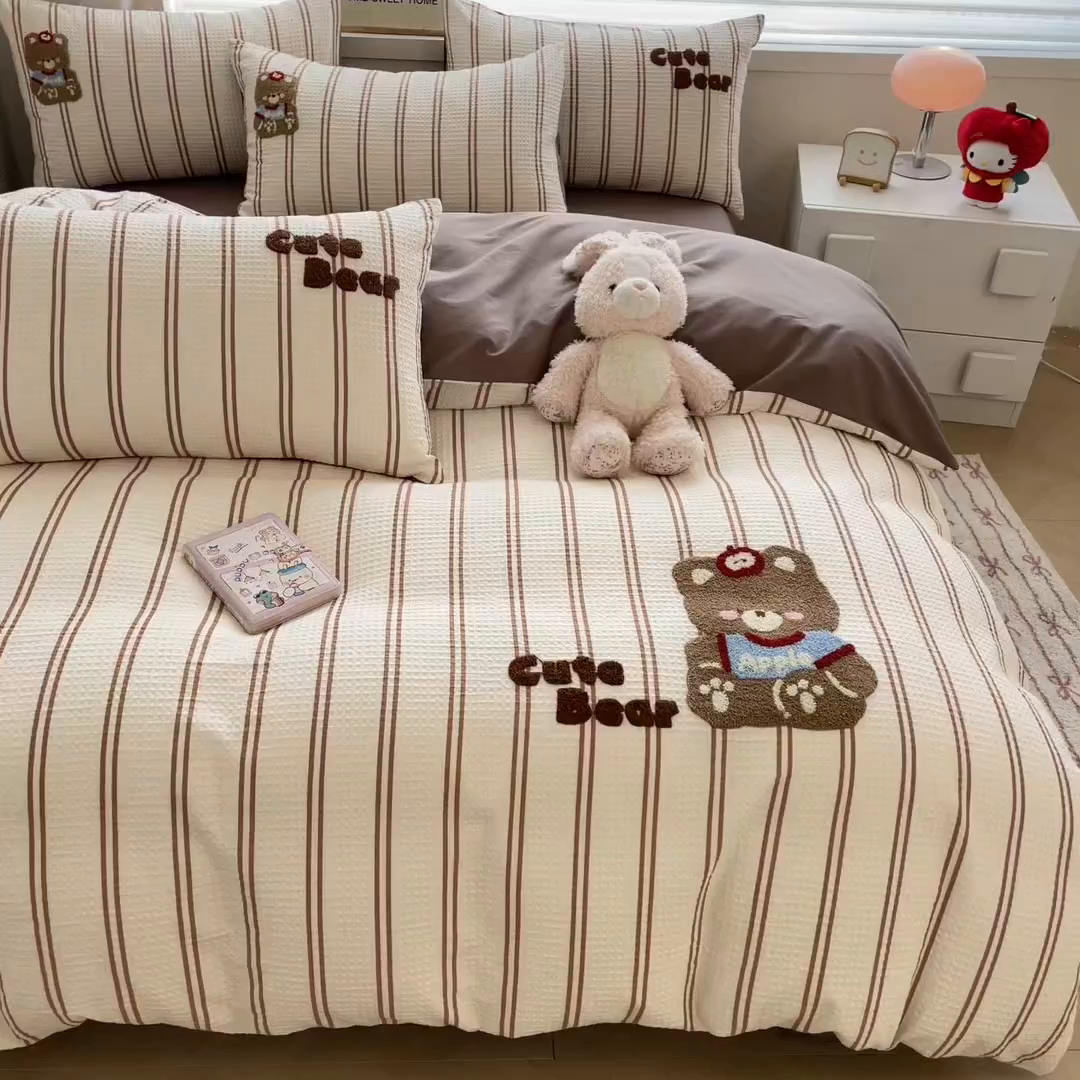 2025新款A类100%全棉磨毛条格卡通系列四件套