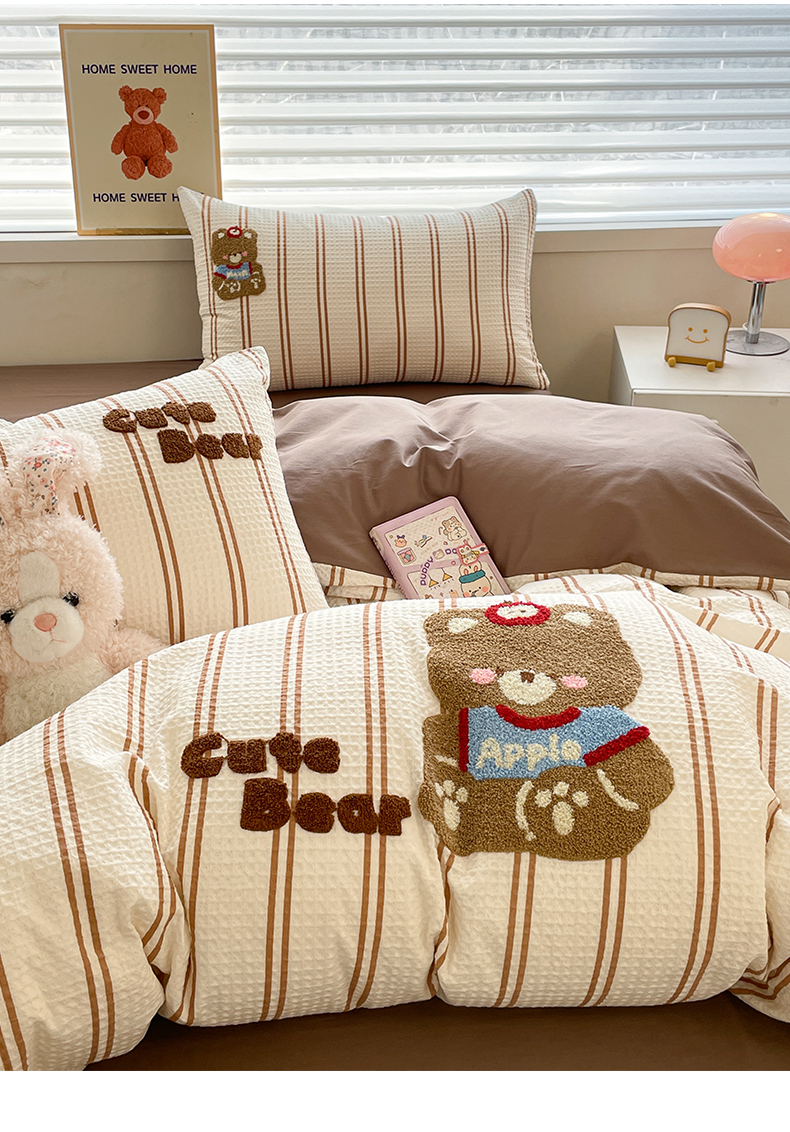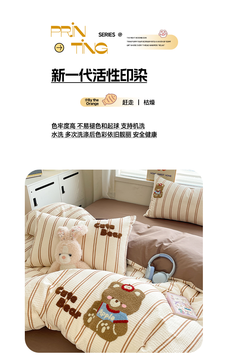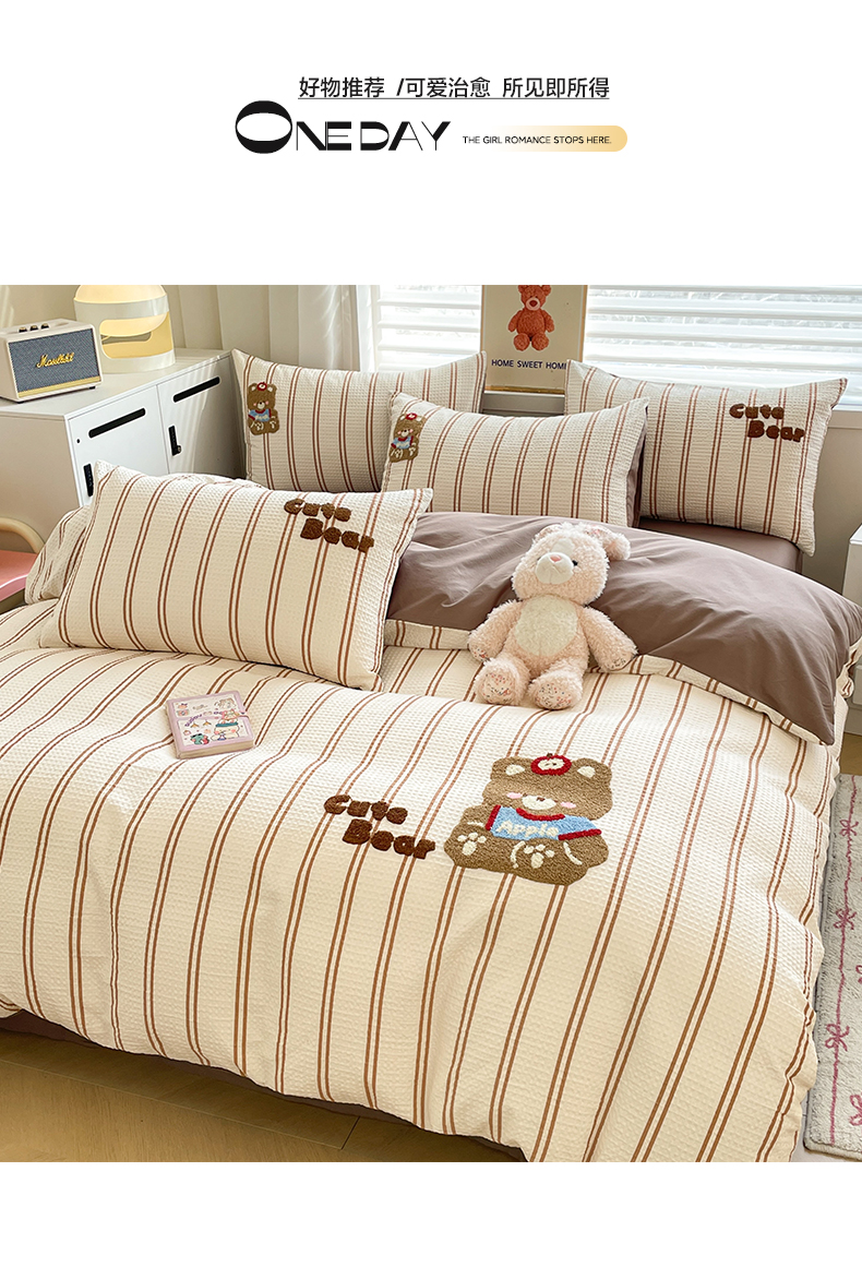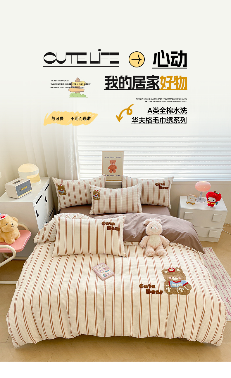 2025新款A类100%全棉磨毛条格卡通系列四件套