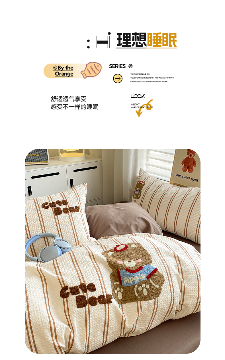 A类全棉良品风学生宿舍床三件套
