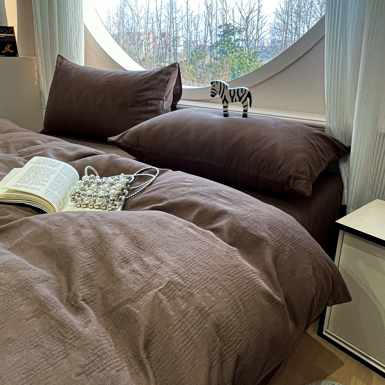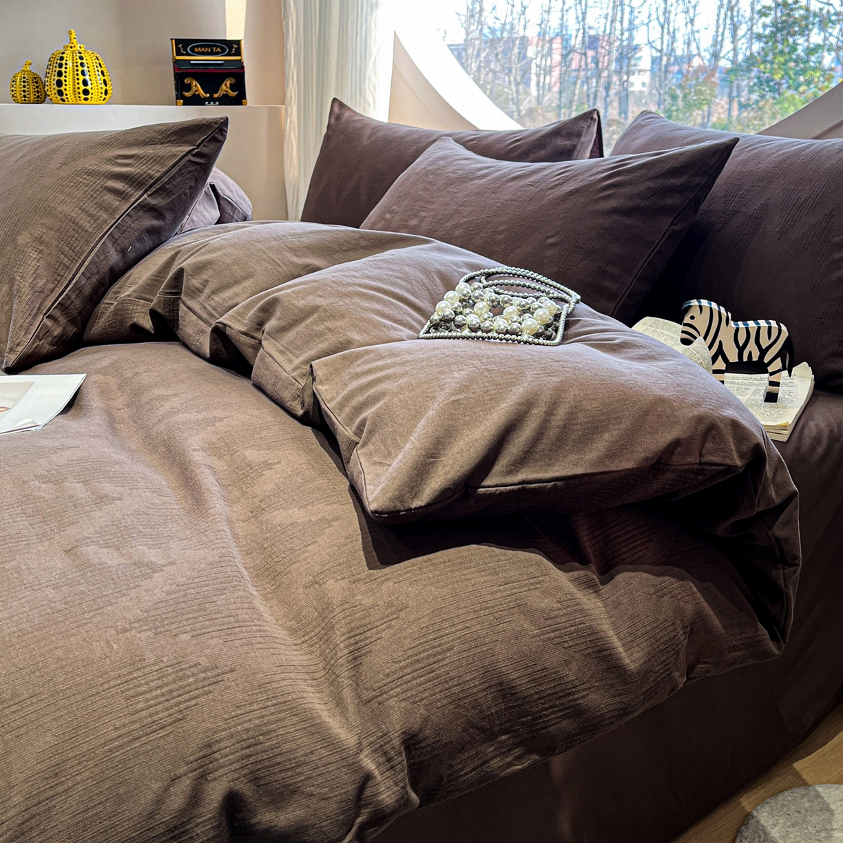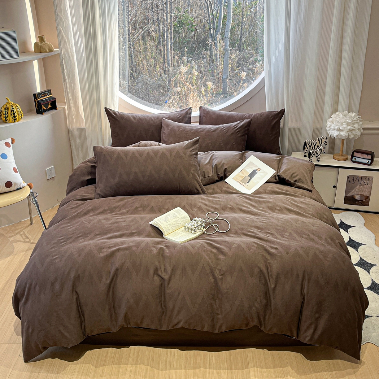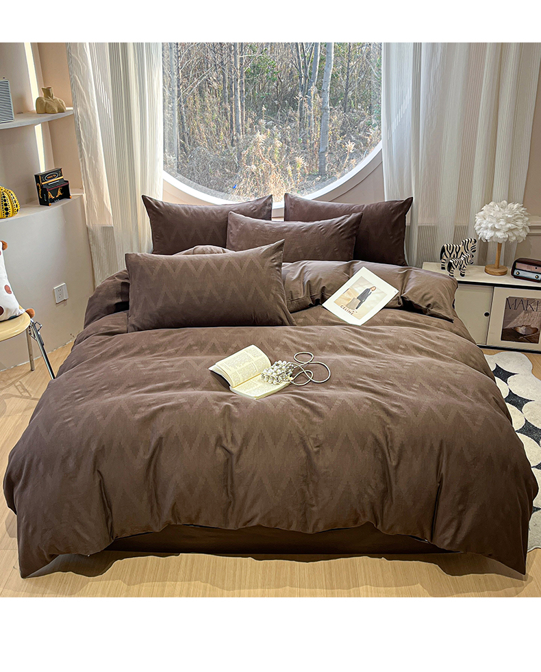 2025新款A类高克重牛奶绒泡泡绒印花美拉德风系列四件套