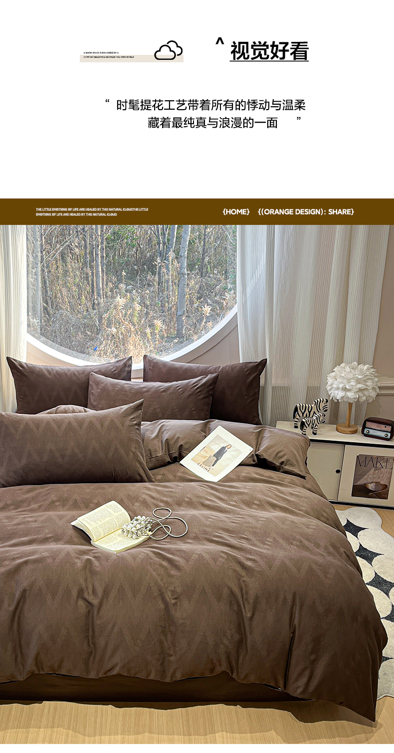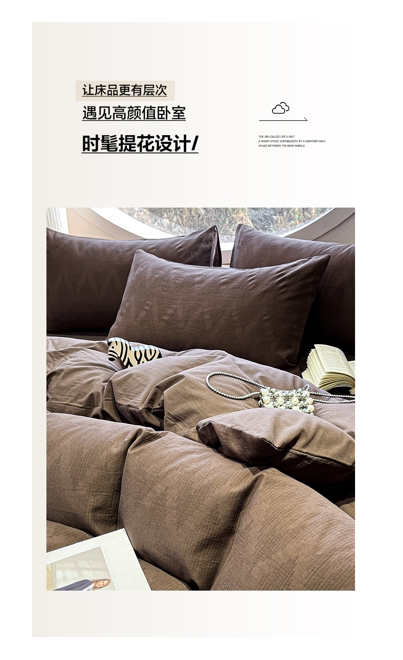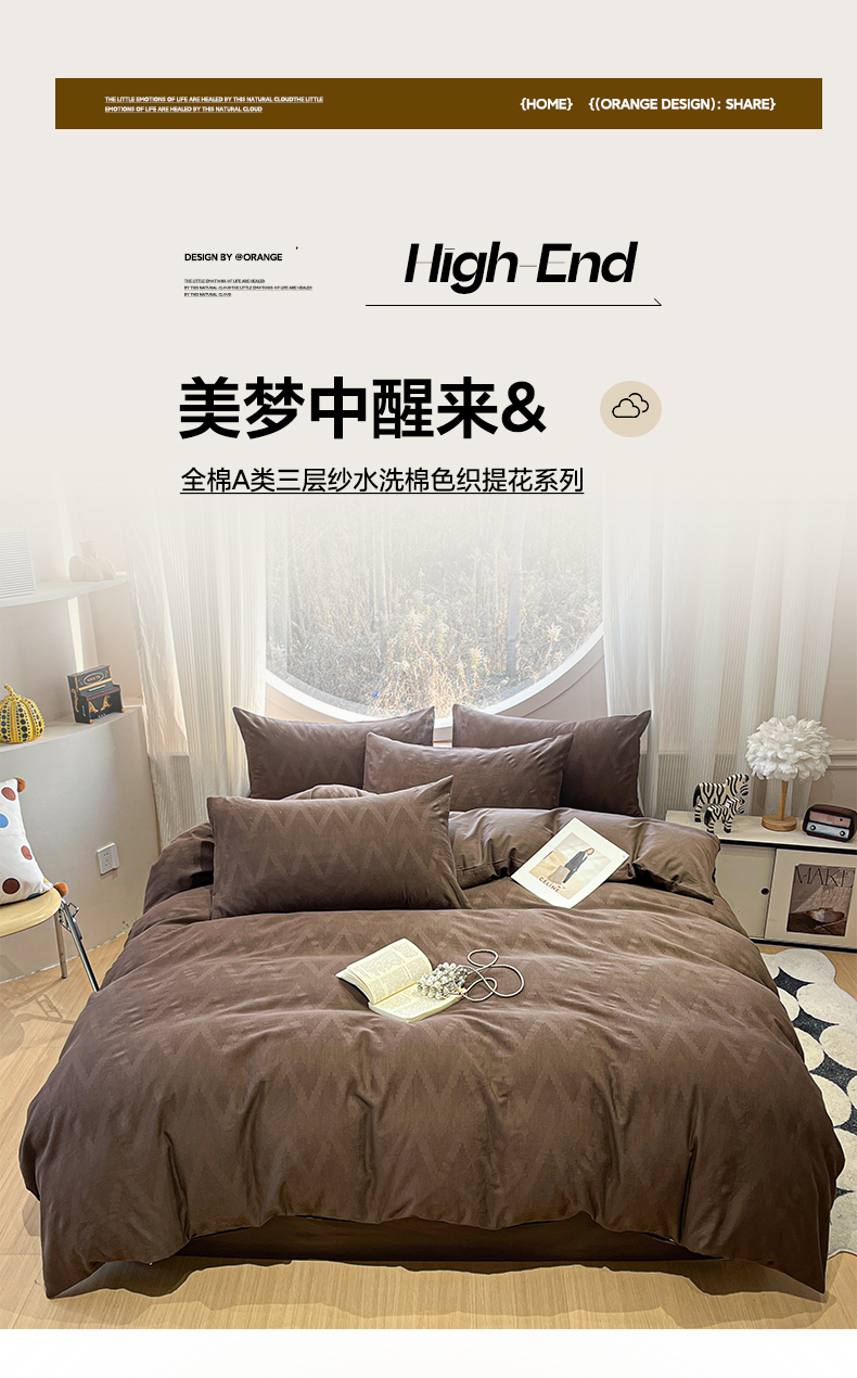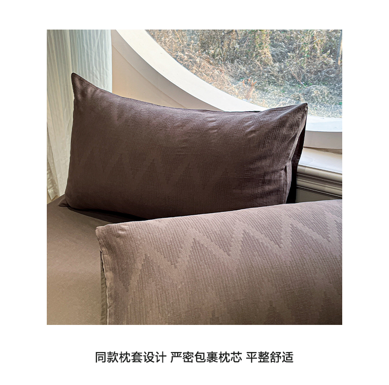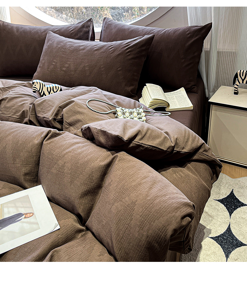 > 莱登卡奴 2026新款全棉A类三层纱水洗棉色织提花四件套系列 变幻之韵深咖