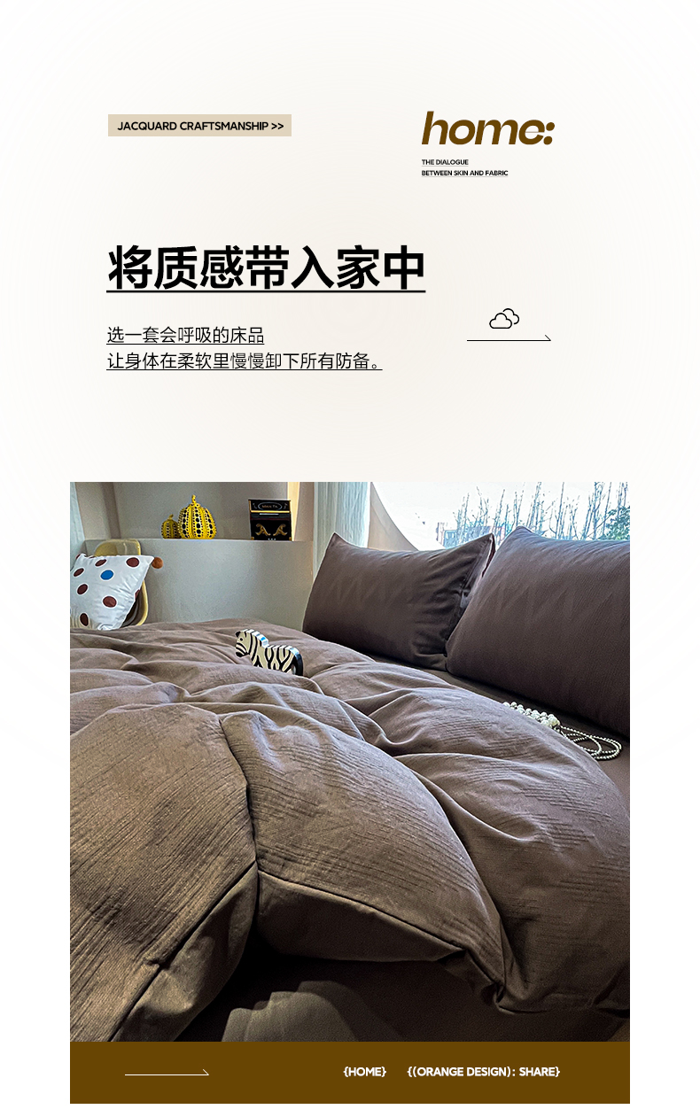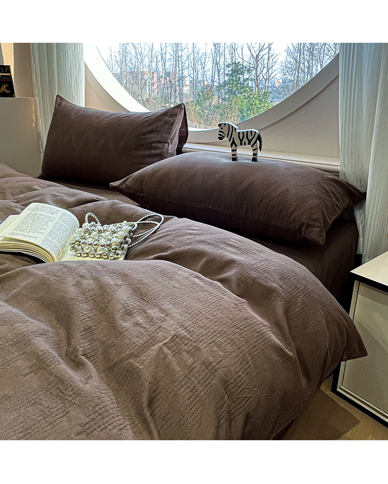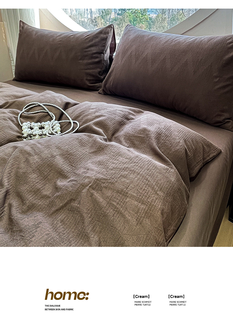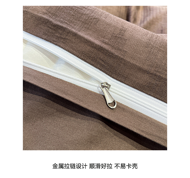 > 莱登卡奴 2026新款全棉A类三层纱水洗棉色织提花四件套系列 变幻之韵深咖