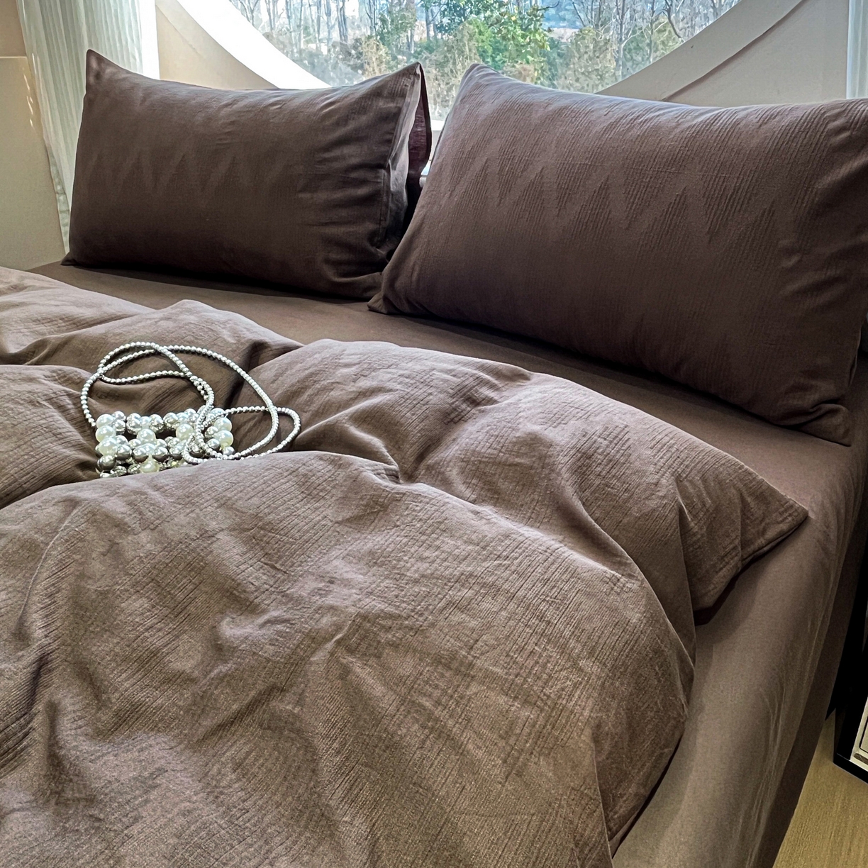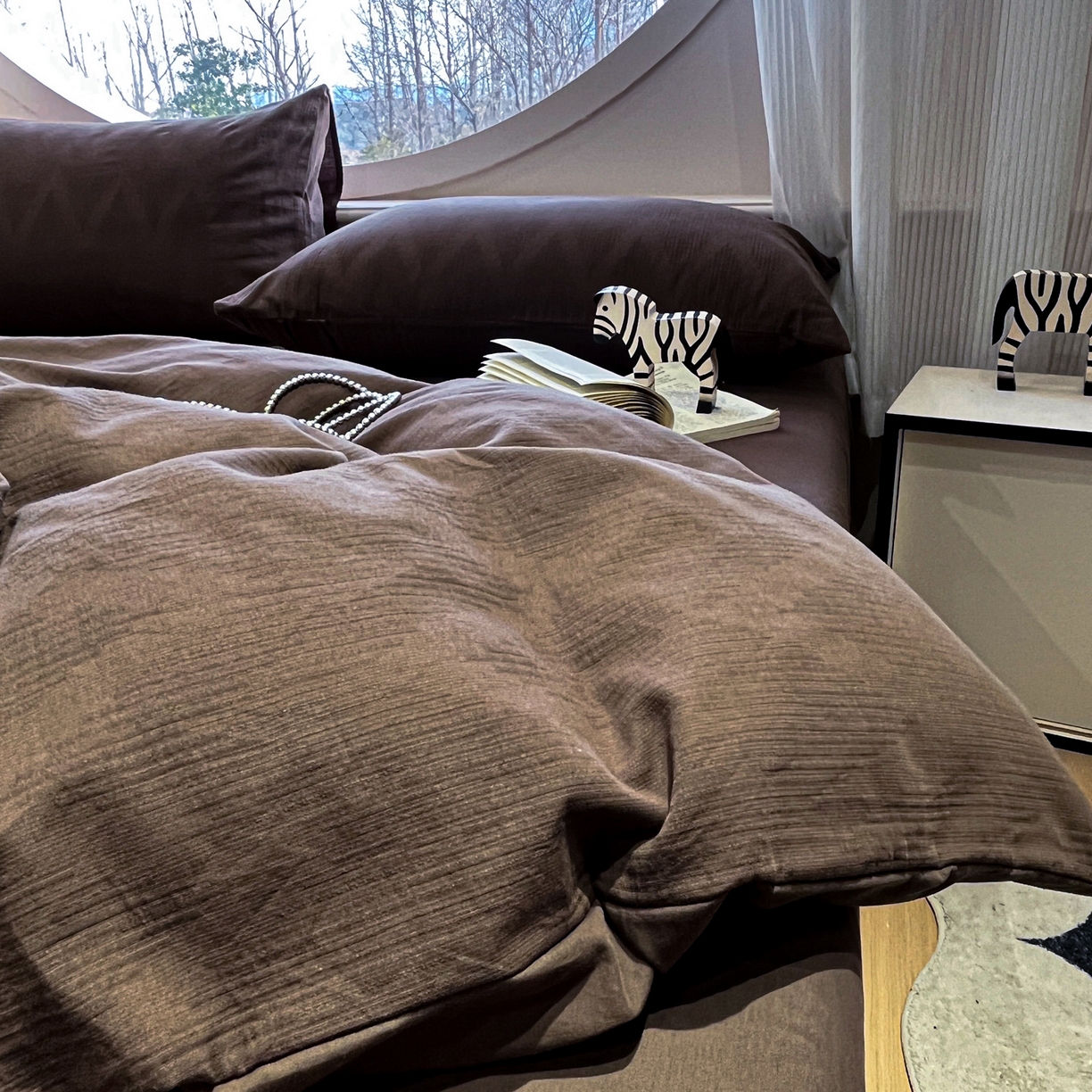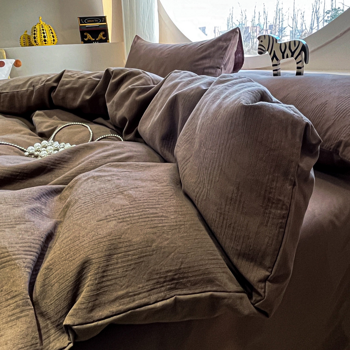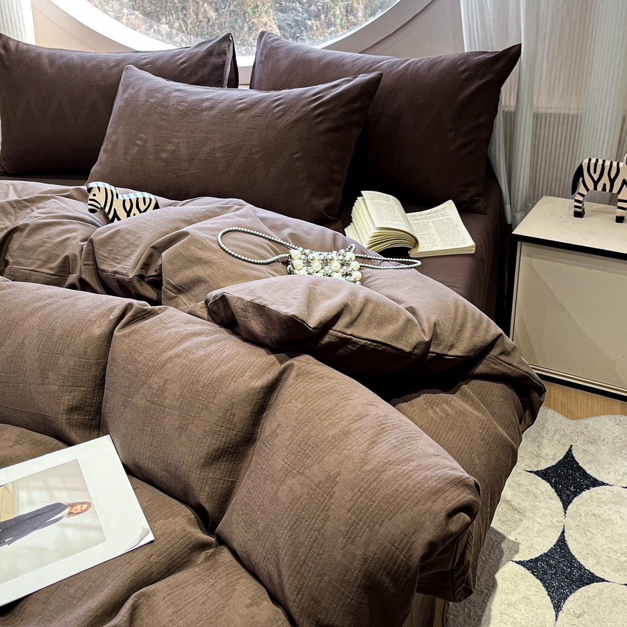 > 莱登卡奴 2026新款全棉A类三层纱水洗棉色织提花四件套系列 变幻之韵深咖