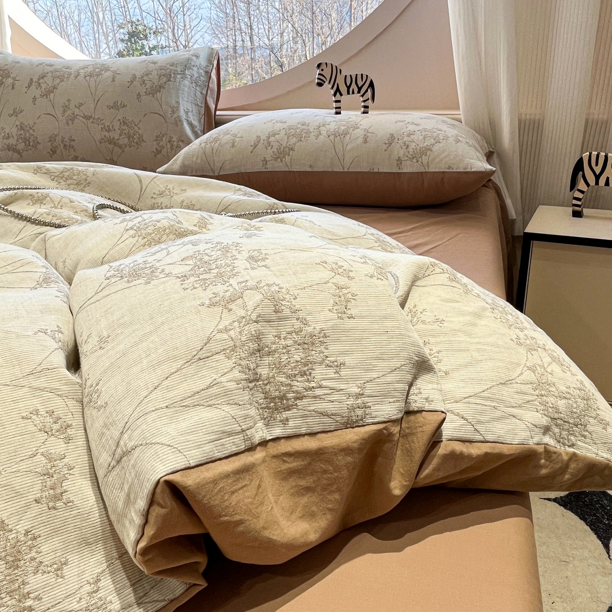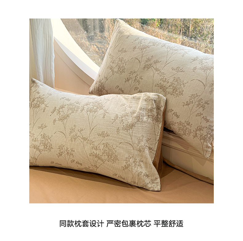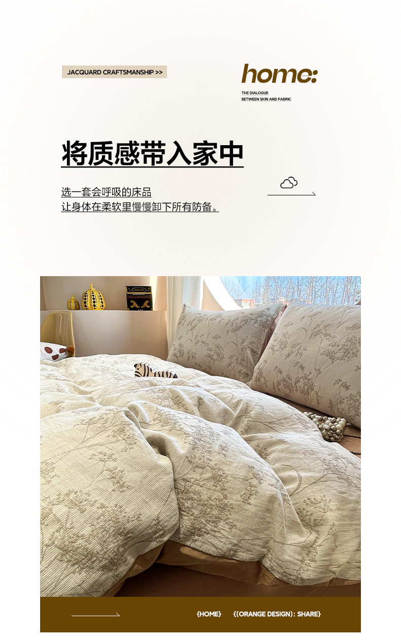 > 莱登卡奴 2026新款全棉A类三层纱水洗棉色织提花四件套系列 琼枝丽影
