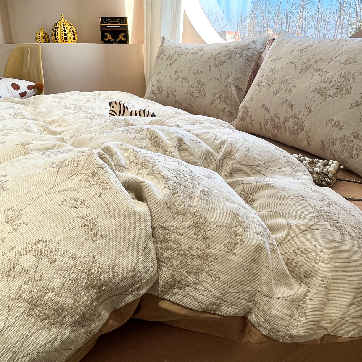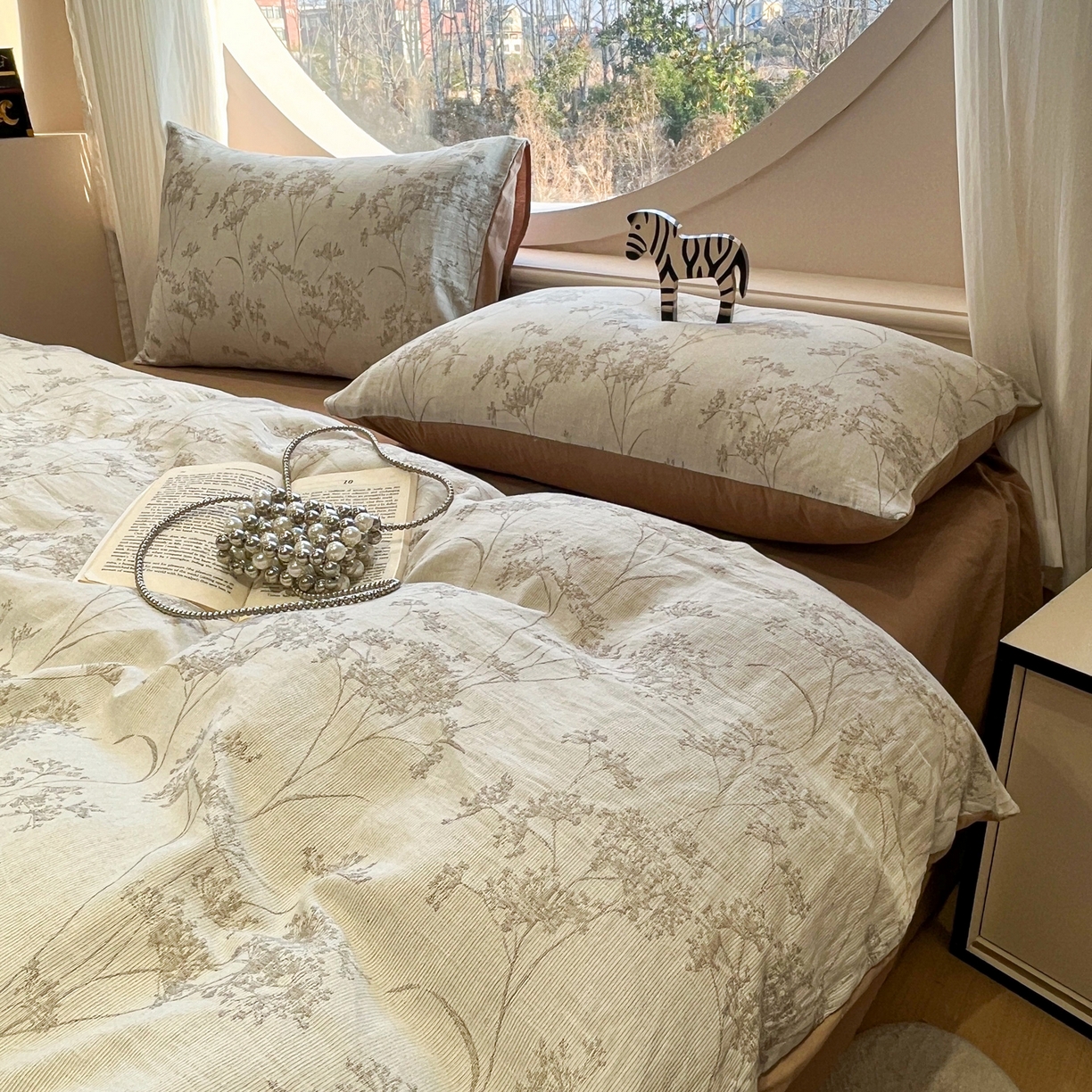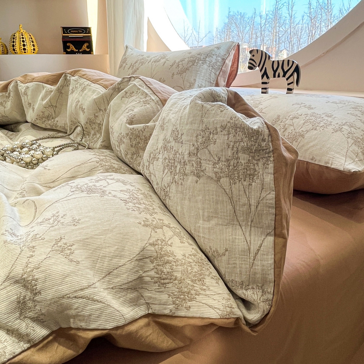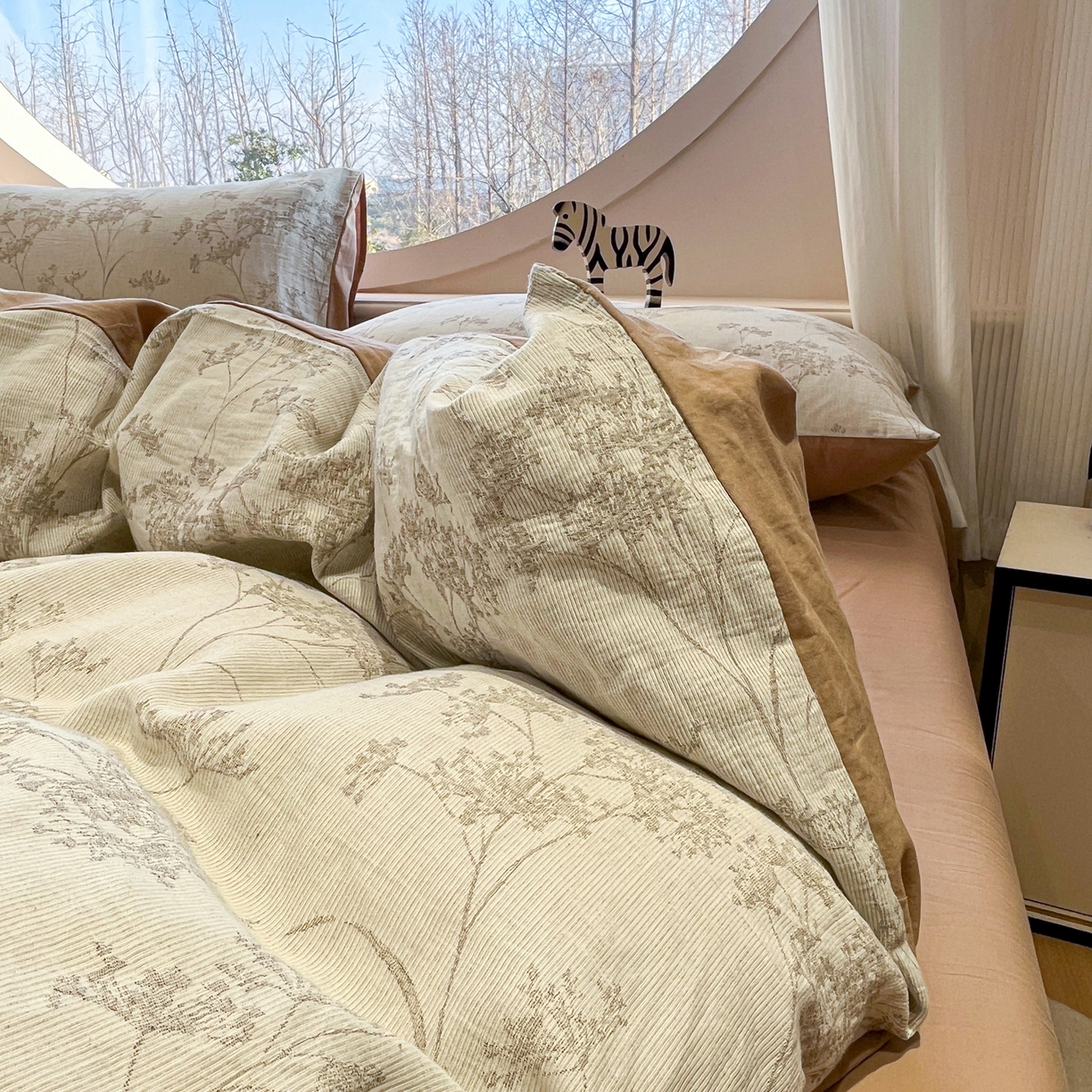 2025新款A类高克重牛奶绒泡泡绒印花美拉德风系列四件套
