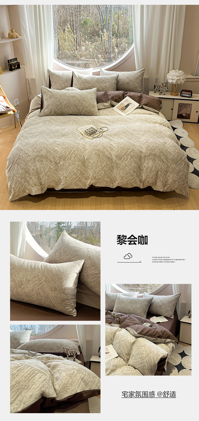 2025新款牛奶绒着色立体浮雕雕花绒四件套-赫本系列
