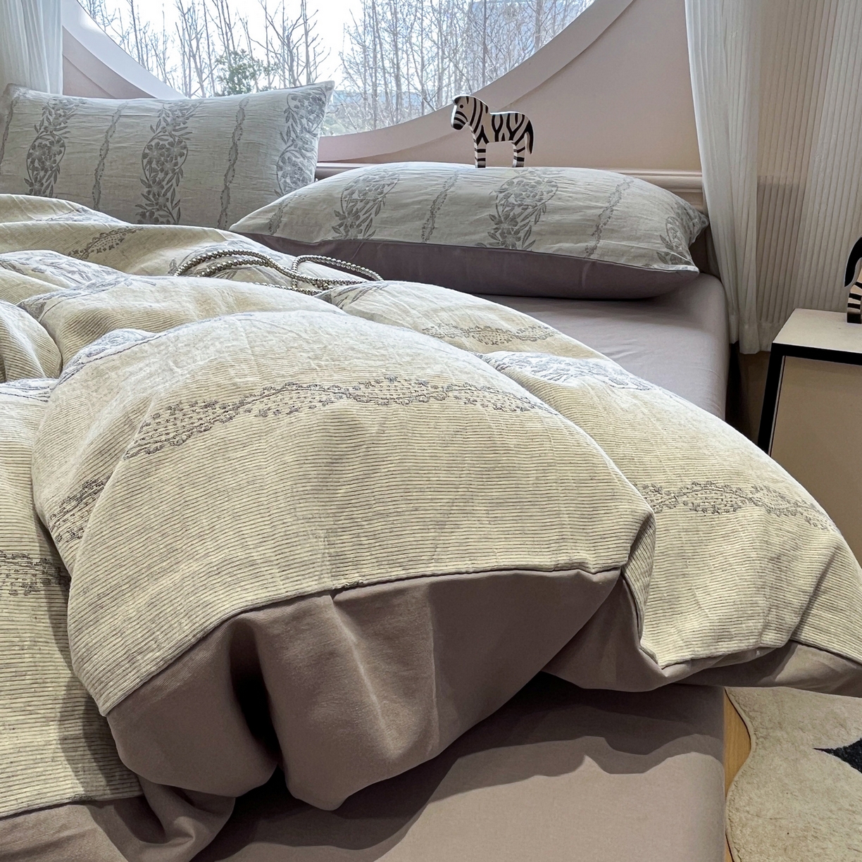 2025新款A类高克重牛奶绒泡泡绒印花美拉德风系列四件套
