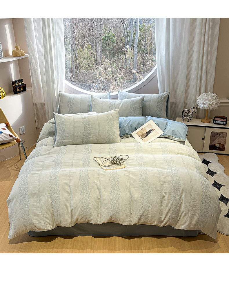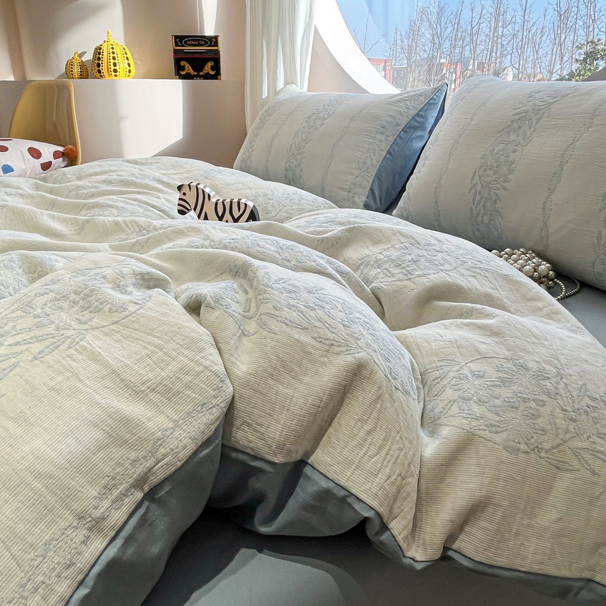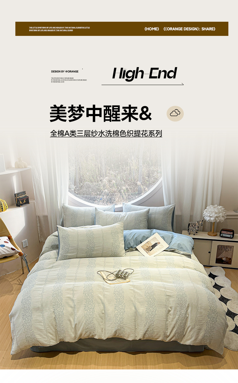 2026新款全棉A类三层纱水洗棉色织提花四件套系列