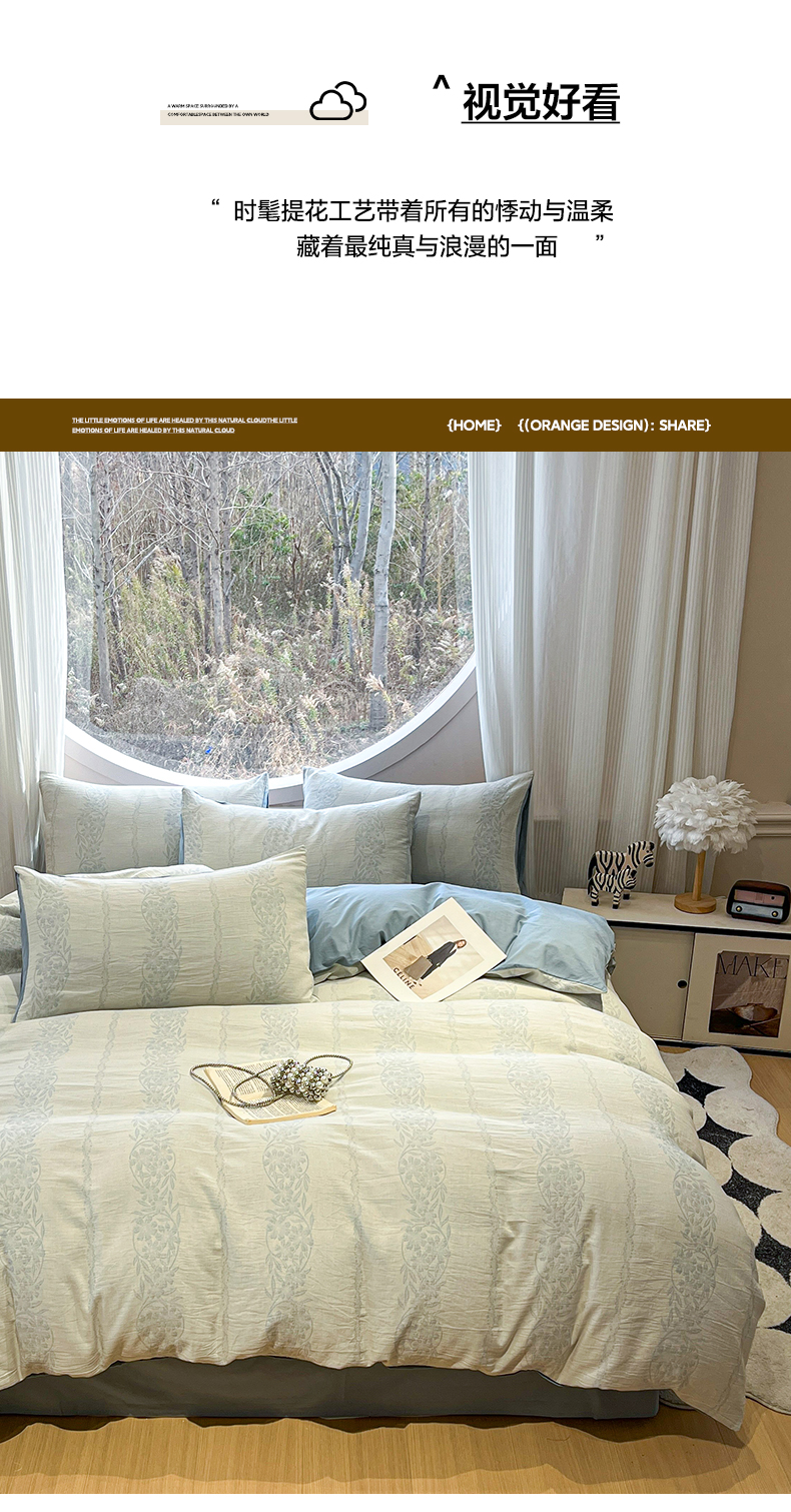 2026春夏新款全棉纯棉A类60S水洗浮雕立体提花四件套-柔美系列