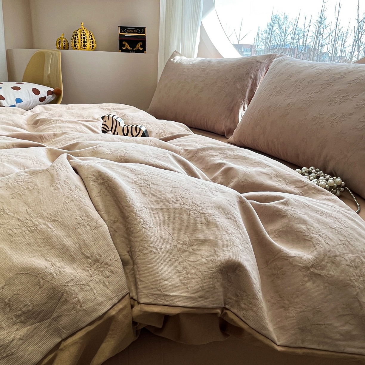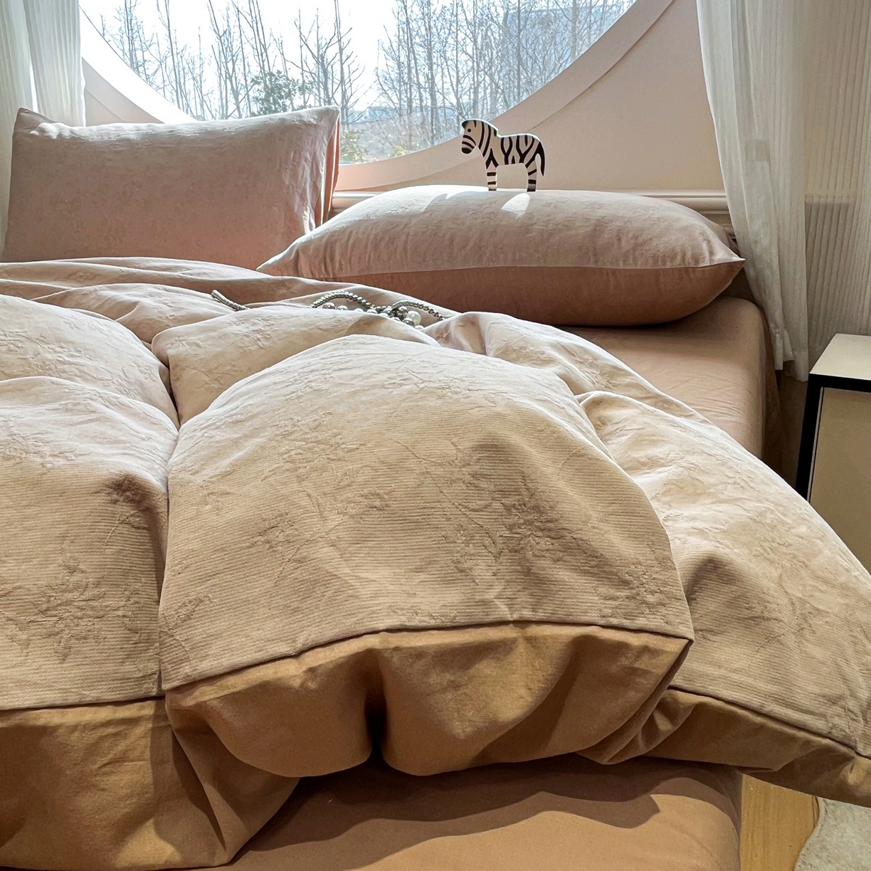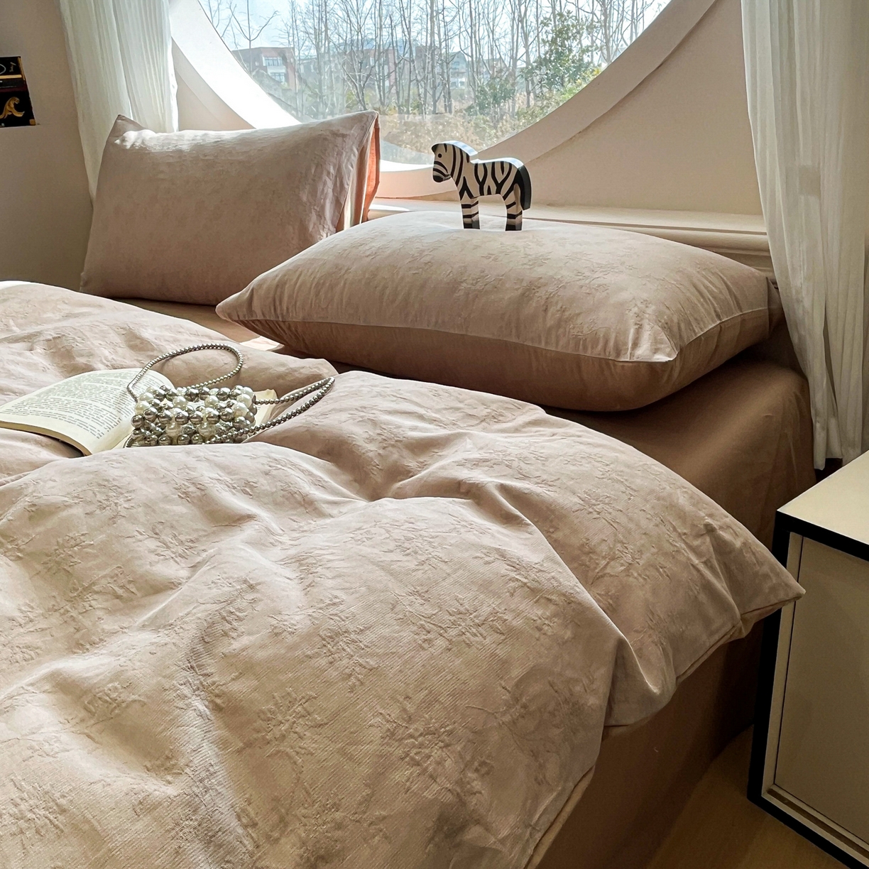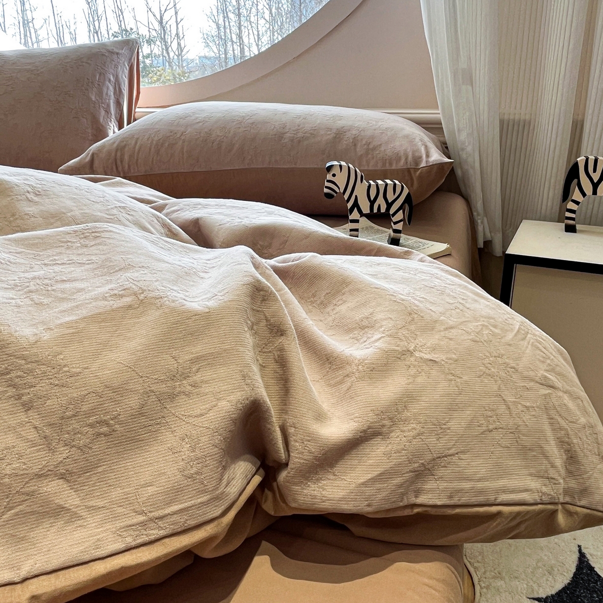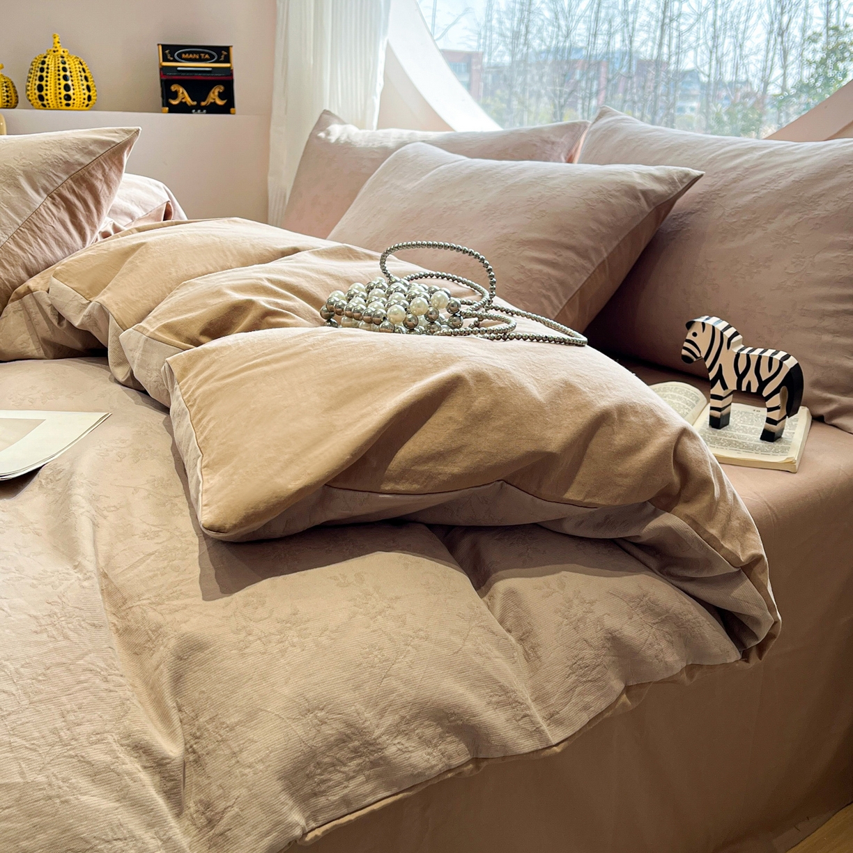 2025新款A类高克重牛奶绒泡泡绒印花美拉德风系列四件套