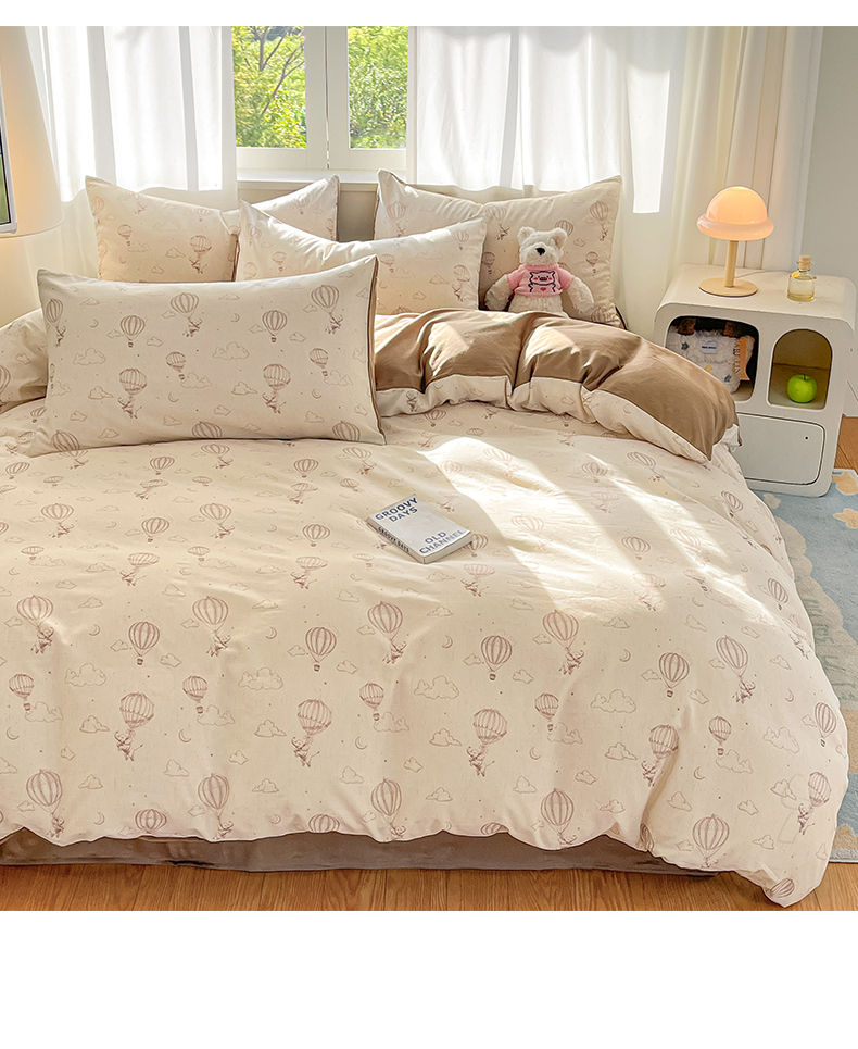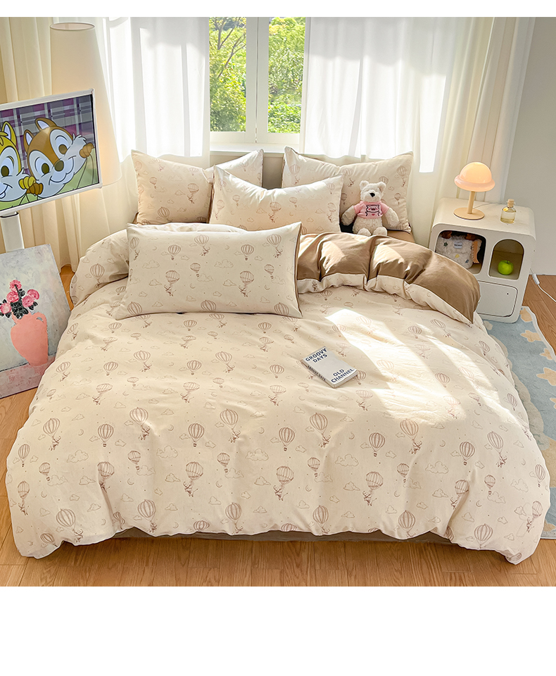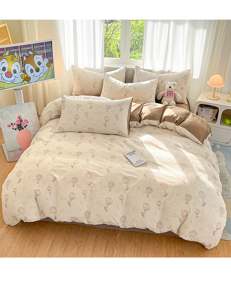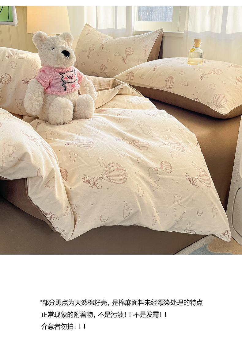 > 莱登卡奴 2026新款A类水洗棉麻小清新印花四件套 小飞象