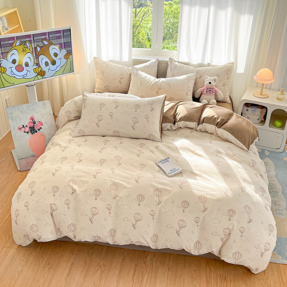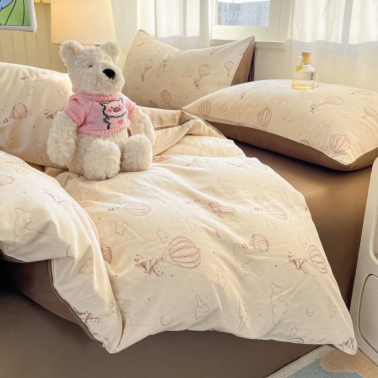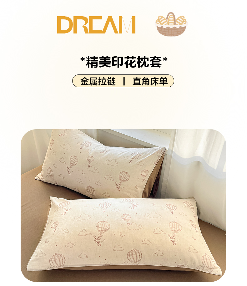 > 莱登卡奴 2026新款A类水洗棉麻小清新印花四件套 小飞象