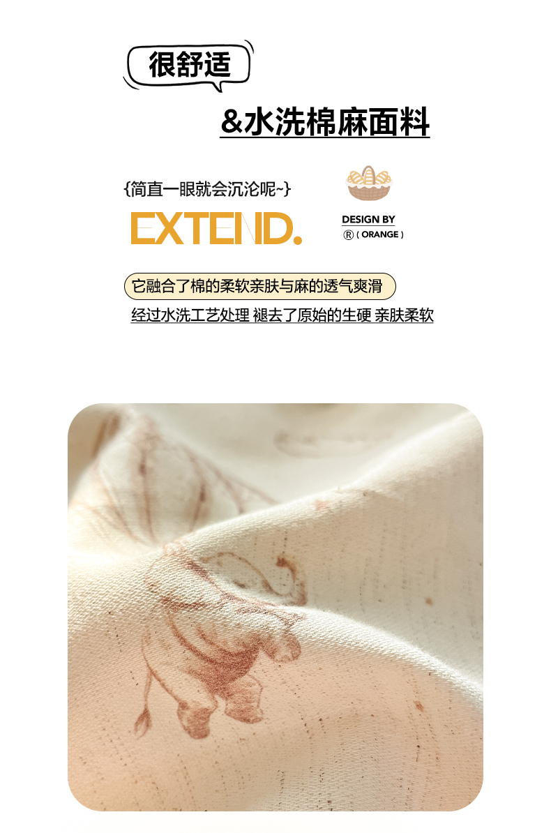 2026新款A类水洗棉麻小清新印花四件套