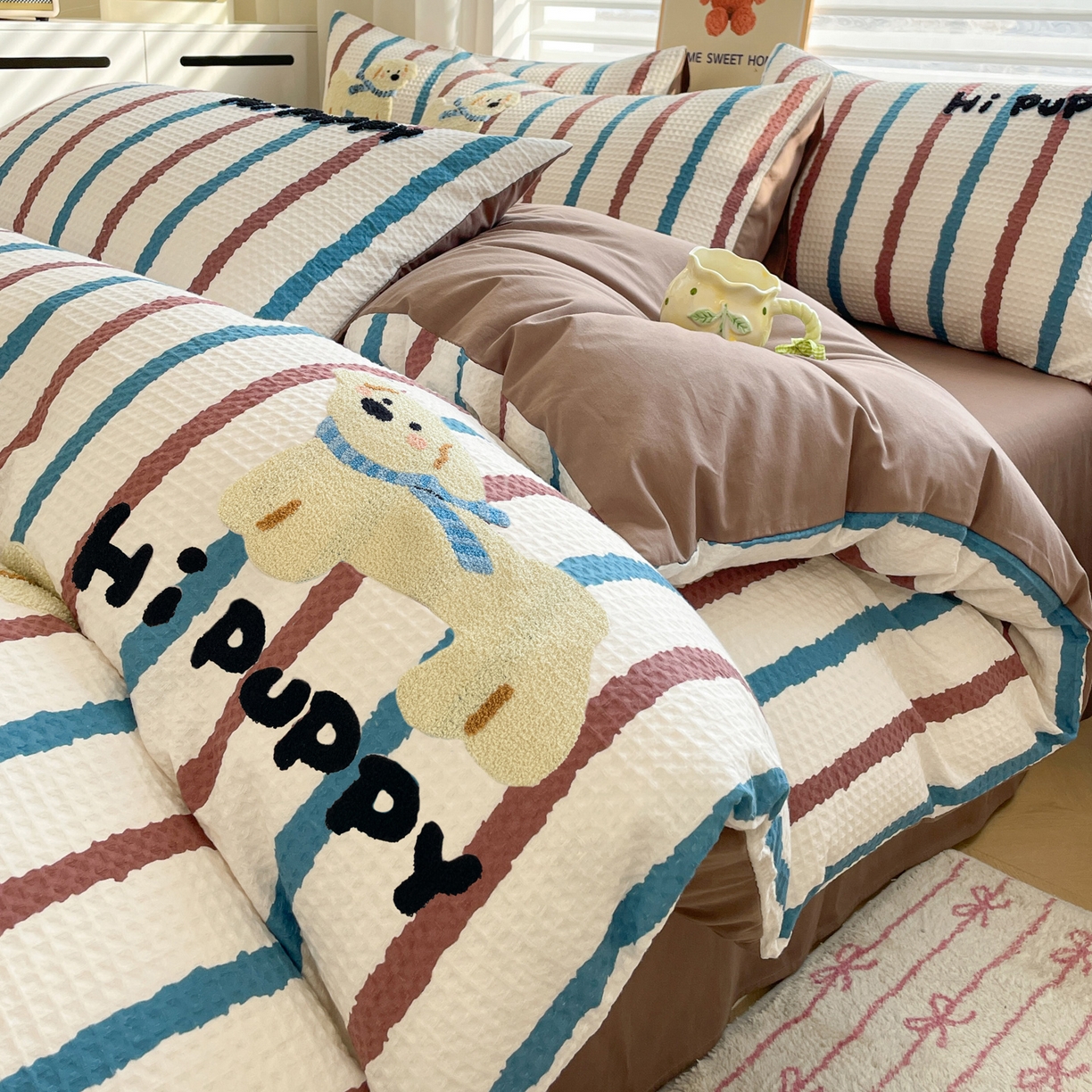 全棉A类色织水洗棉贝壳绣学生宿舍床系列